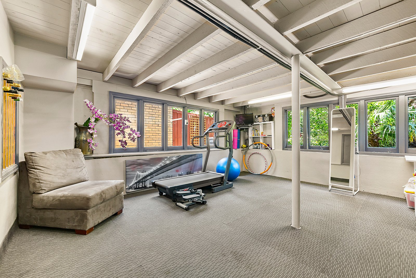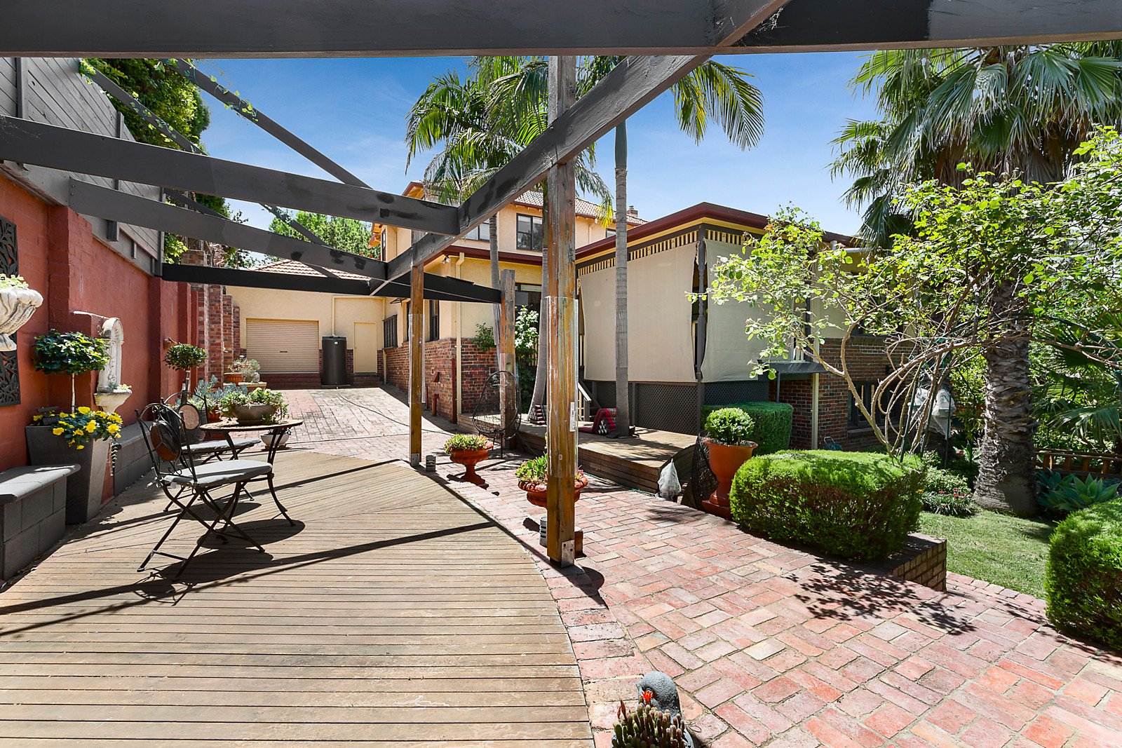 Polished hardwood floors, leadlight windows and ornate ceilings are highlighted through the columned entrance hall and palatial formal sitting and dining room with a wood fire heater. An expansive separate living room is perfect as a home theatre. Appointed with European appliances and granite benches, the superb kitchen and casual dining area open to a large covered deck overlooking the leafy private garden extensively landscaped with decks, paved terraces, palm trees and a bridge over a pond. Below the house there is a versatile gym or rumpus room with powder-room and store-room. The main bedroom with ensuite and built in robe and a spacious study or home office are downstairs while a fabulous children's zone upstairs comprises three additional bedrooms with robes and a lavish family bathroom with spa bath.