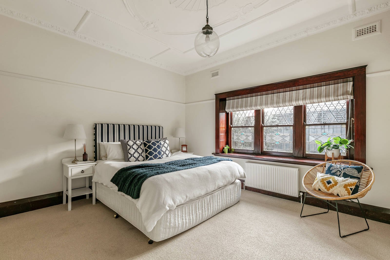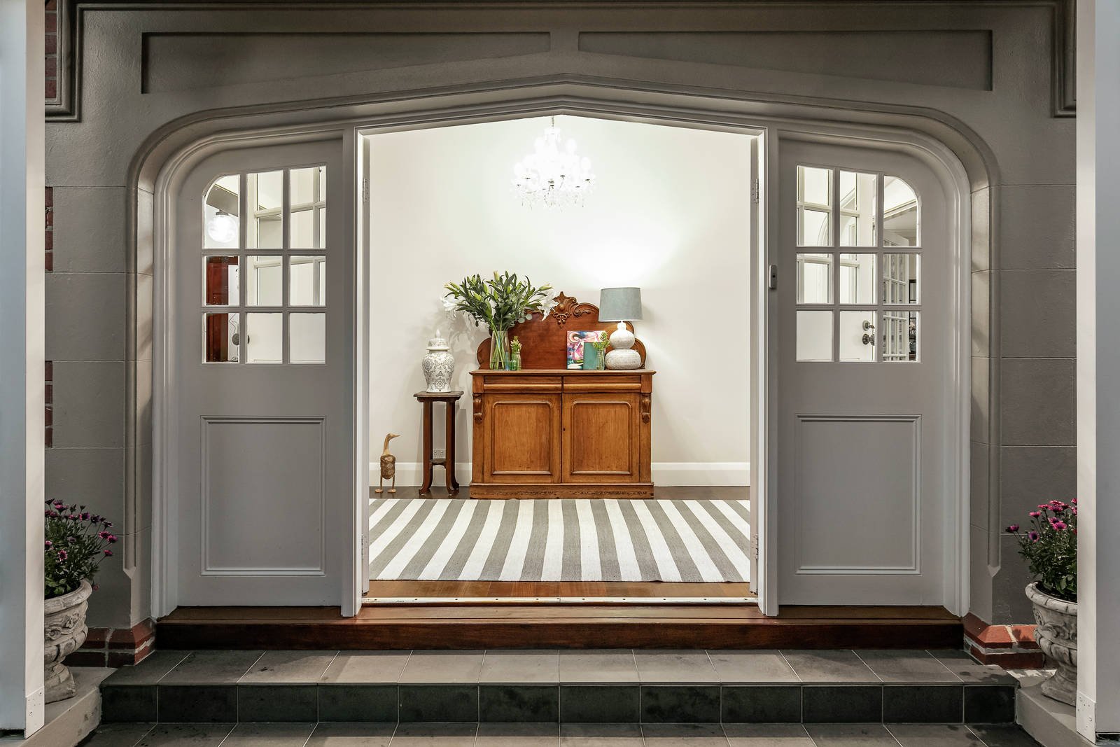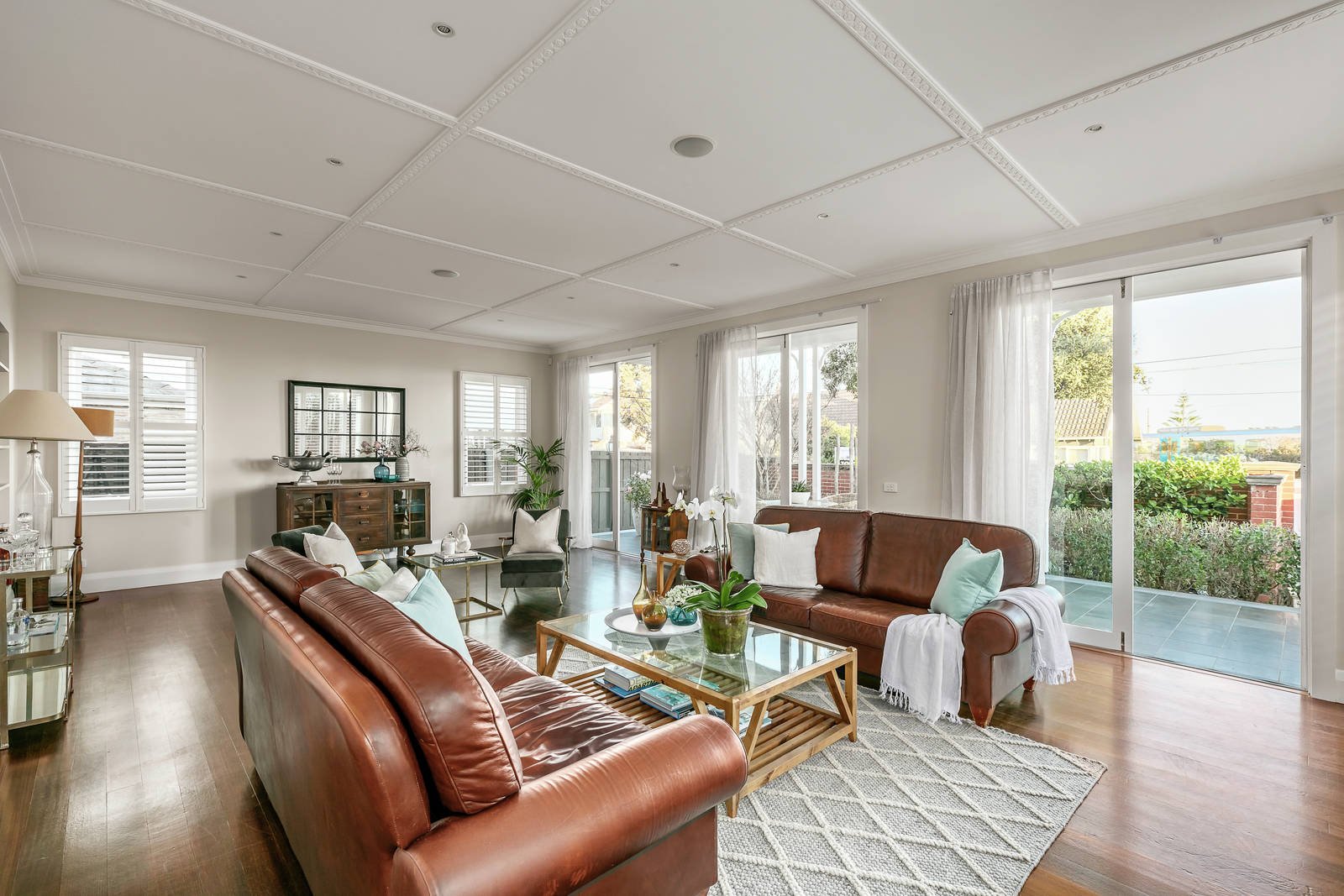A -two storey Hamptons style extension and renovation, designed by Jo McIntyre of Beautiful Home, perfectly complement the original 1920s residence that celebrates ornate English and Edwardian elements, typical of grand family homes of the era. The stunning entrance showcases the original timber staircase, soaring ceilings with decorative plasterwork and stained-glass windows, features that are evident throughout the original section of the home. Living and entertaining options abound with a formal lounge, TV room/retreat, home office plus a spectacularly spacious and light-filled open-plan zone defined by soaring cathedral ceilings and French doors that open out to the alfresco area, pool and spa. Upstairs, water views are available from every room and are particularly stunning from the main bedroom suite's wide veranda. This spacious retreat has a fully fitted WIR, and ensuite with double-vanity, double shower and free-standing bath facing the bay. Two further oversized bedrooms with BIRS, views, and a family bathroom are upstairs, while the fourth bedroom with BIRs and ensuite is downstairs. The Caesarstone kitchen includes an extra wide island bench, sleek cabinetry and European cooking appliances including a steam oven and induction cook top. There is a spacious butler's pantry, with access to the car port. The gas & solar heated pool and spa is privately set in front of a screen of tall bamboo and the north-facing outdoor alfresco area includes an undercover lounge area and outdoor dining deck. There is a gas log fire in the light-filled Hampton's style front lounge plus hydronic heating and S/S air/con downstairs and evaporative cooling upstairs. Adaptive repurposing of the former swimming pool has resulted in a wine cellar, with enough storage for around 45 dozen bottles. Other noteworthy features include fully fitted laundry/mud room, outdoor shower, pet-friendly yard, car port with plenty of storage for bikes, surfboards and everything an active family living so close to the water would need. Just moments from the sand, an 8-minute walk to Brighton Beach station, close to sports oval, Hampton Street and Church Street shops and schools.