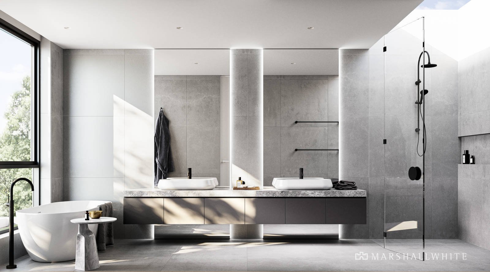 the day away in the oversized walk-in shower or go about your nightly regime at the generous double vanity, complete with plentiful integrated storage.