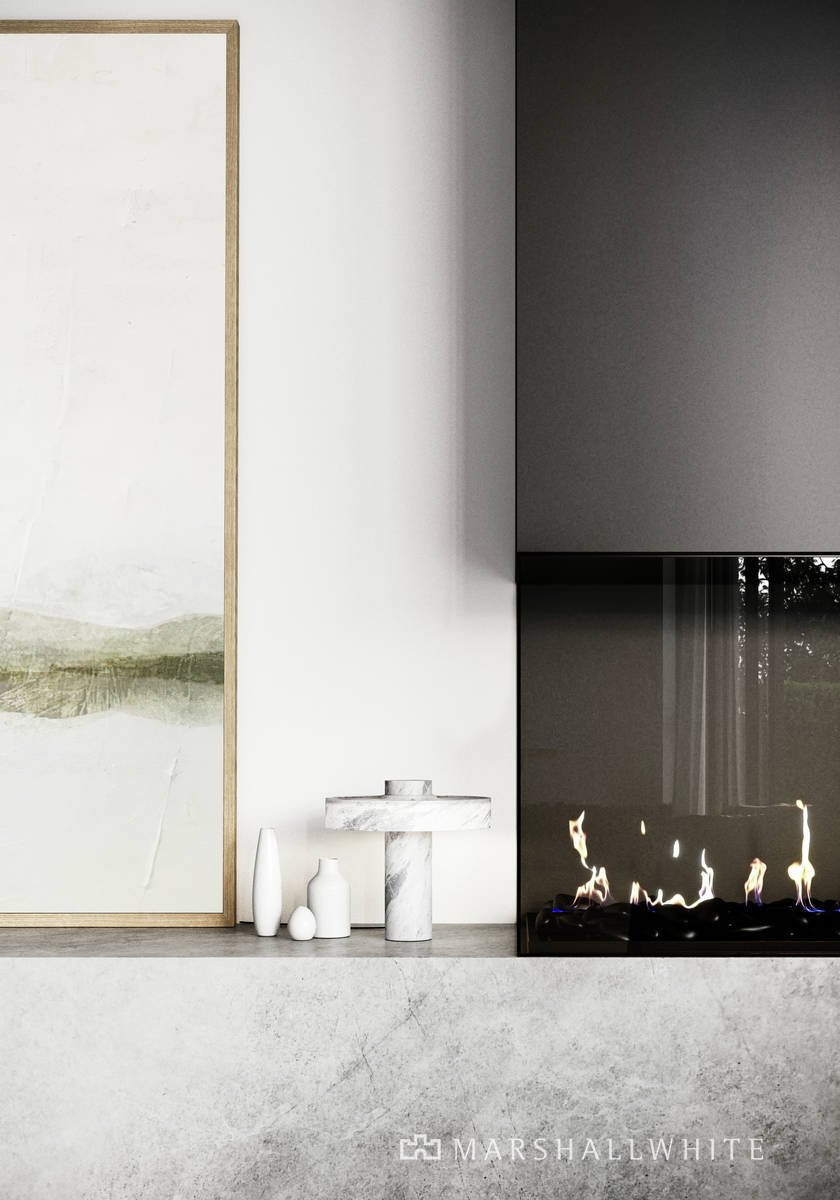 Vast in size, the open-plan living area is a haven for entertaining or unwinding. Set upon an alluring stone plinth, a seamless frame gas fireplace delivers a sense of opulence whilst efficiently heating the space. European Oak floors of the highest quality create a homely and organic feel, enhanced by dappled light through the treetops.