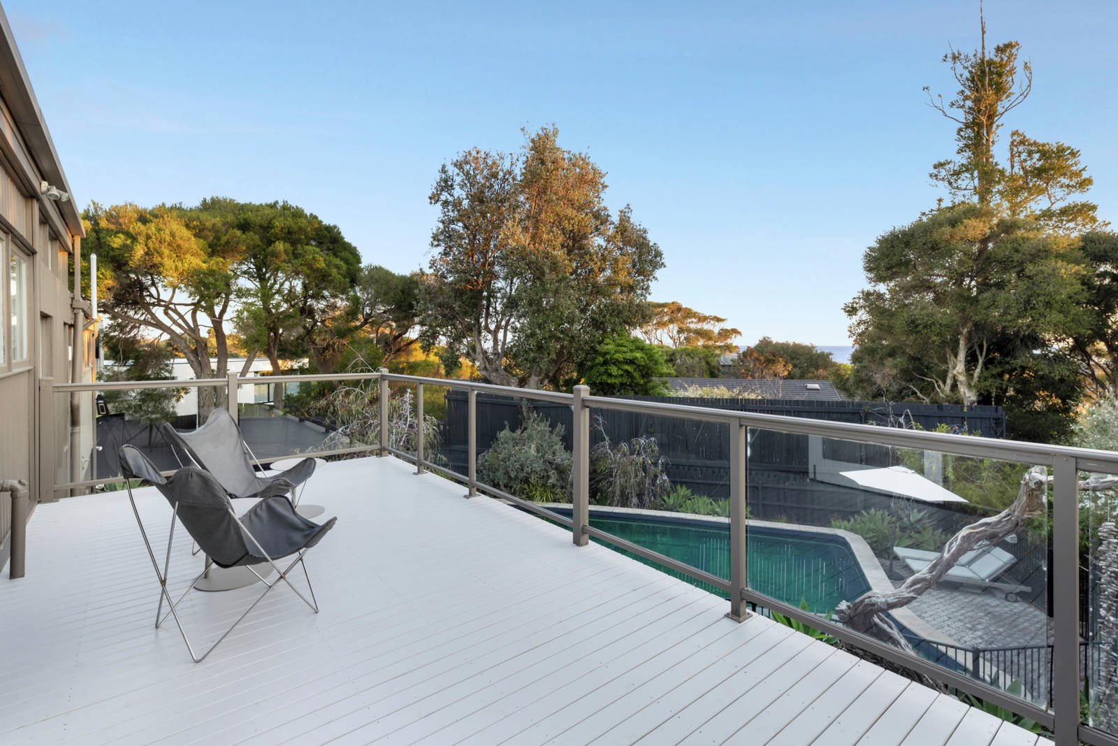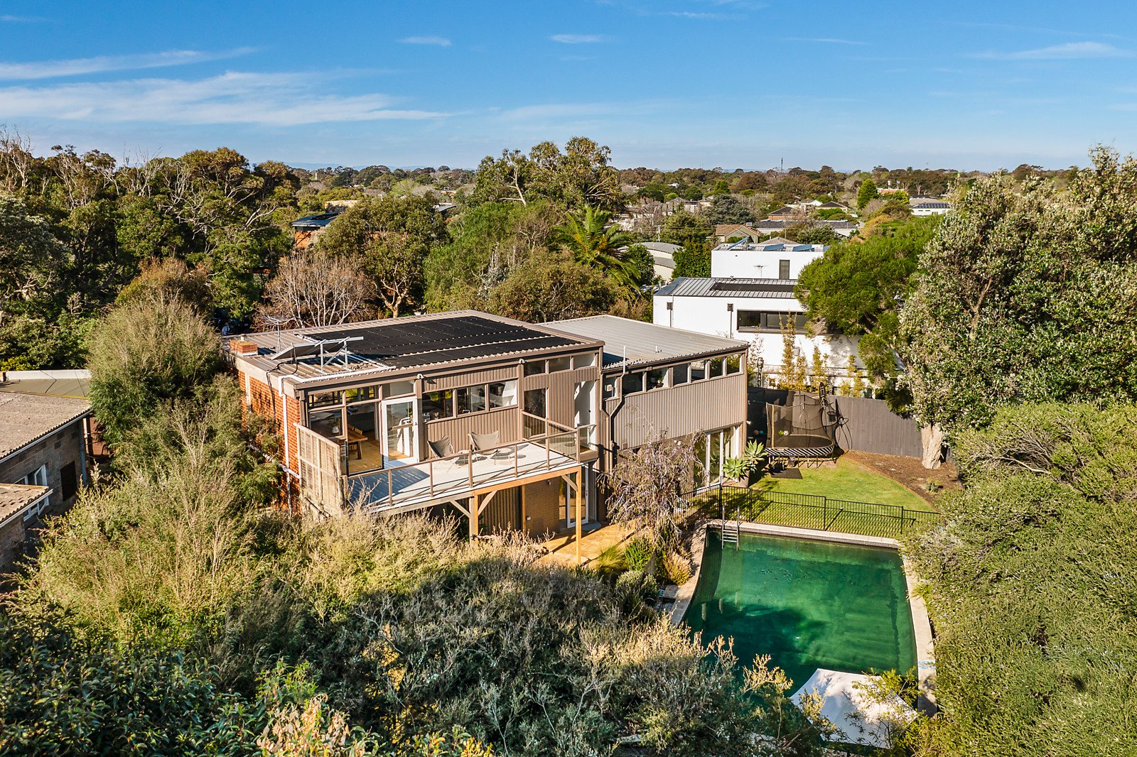 Outstanding renovated home is idyllic for family living, with the beach just a few blocks away, bay views and 900 square metres (approx) of land in arguably one of the best streets in Beaumaris. Te Hongi Court sits high on a hill, and just a fortunate few are privileged to call this hideaway location home. What started out as a 1950s holiday house is now a three-level oasis, renovated with respect for the Mid-Century architecture by the interior designer owner. The heart of this four-bedroom and study home is a light-filled living and dining zone featuring signature style, bay and garden views, and Tasmanian oak floors. See the ever-changing bayscape from the kitchen, and admire the sprawling coastal garden from both levels of this well-appointed residence. There's a parents' retreat designed to perfection with garden and pool access from the bedroom, a stone Boyd Alternatives freestanding bath and a ceiling shower in the renovated ensuite, a walk-in wardrobe and study. Outdoor living is everything you could wish for, with a large pool bathed in sunshine, an arc of stone seating, tea-tree shaded dining area, and superb coastal landscaping. Excellent updates include a decked entrance, hydronic heating, renovated family bathroom, new loop pile carpet, a laundry/mudroom next to the double garage, and the option of a fifth bedroom. Book a private inspection to appreciate the prestige address, proximity to the beach, schools including Beaumaris Secondary School Zone, shops and design-focused transformation.