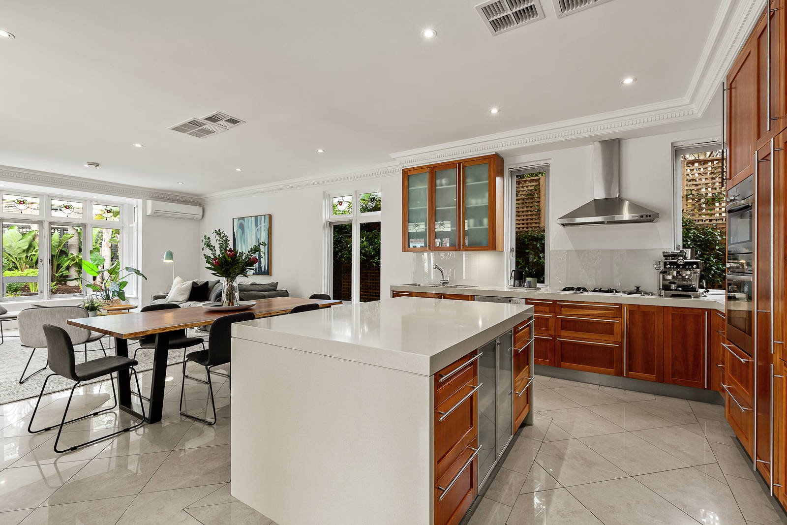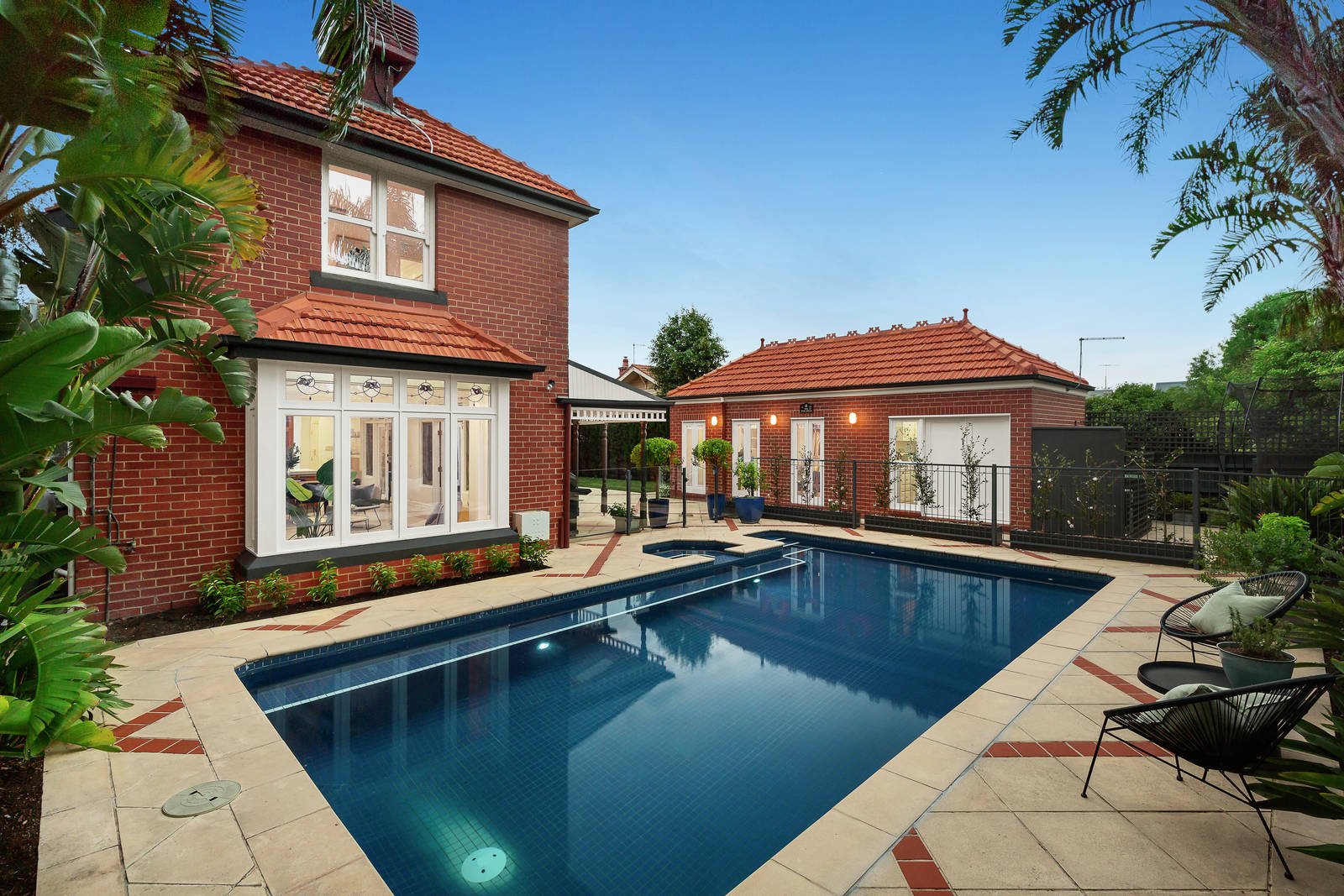 Edwardian grandeur meets contemporary luxury in this prestigious Brighton home, impeccably appointed and exclusively located footsteps from the beach, leading schools and Church Street. Renovated and extended to a high standard, the spaciousness and flexible floorplan are outstanding with five bedrooms, five living zones, a resort-style pool and spa, and a separate studio/home office overlooking the pool. Set on an expansive 927 square metres of land (approx), "Tintern" dates back to circa 1910. It sits well back from the street in beautifully landscaped gardens, and multi-car off-street and garage parking is at your front door. This is the perfect family home with large living and dining rooms, a north-facing family room, upstairs retreat/sixth bedroom, TV zone, four bathrooms, ground-floor parents' retreat and a study/extra bedroom. There's the elegance of picket fencing, tuck-pointed brickwork, tessellated tiles, leadlight, high ceilings, fireplaces, fretwork, bay windows and blackbutt timber floors, enhancing the splendor of this immaculate home. The main bedroom offers pure indulgence with a bay-window view to the verdant front garden, a large walk-in wardrobe, and a luxe ensuite bathroom. First-class fitout includes Gaggenau and Miele appliances and a home workstation in the twin-oven kitchen, keypad entry and remote-control gates, wine storage for 600-plus bottles, and gas heating for the pool and spa. One of Brighton's finest examples of Edwardian architecture is ready for you and your family to enjoy the quality, private setting and idyllic central location. Walk around the corner and you're at the iconic Brighton Sea Baths and yacht club, Church Street's cafes, cinemas and shops are 600 metres away, and it's an easy stroll to Brighton Grammar, Firbank and Middle Brighton station.