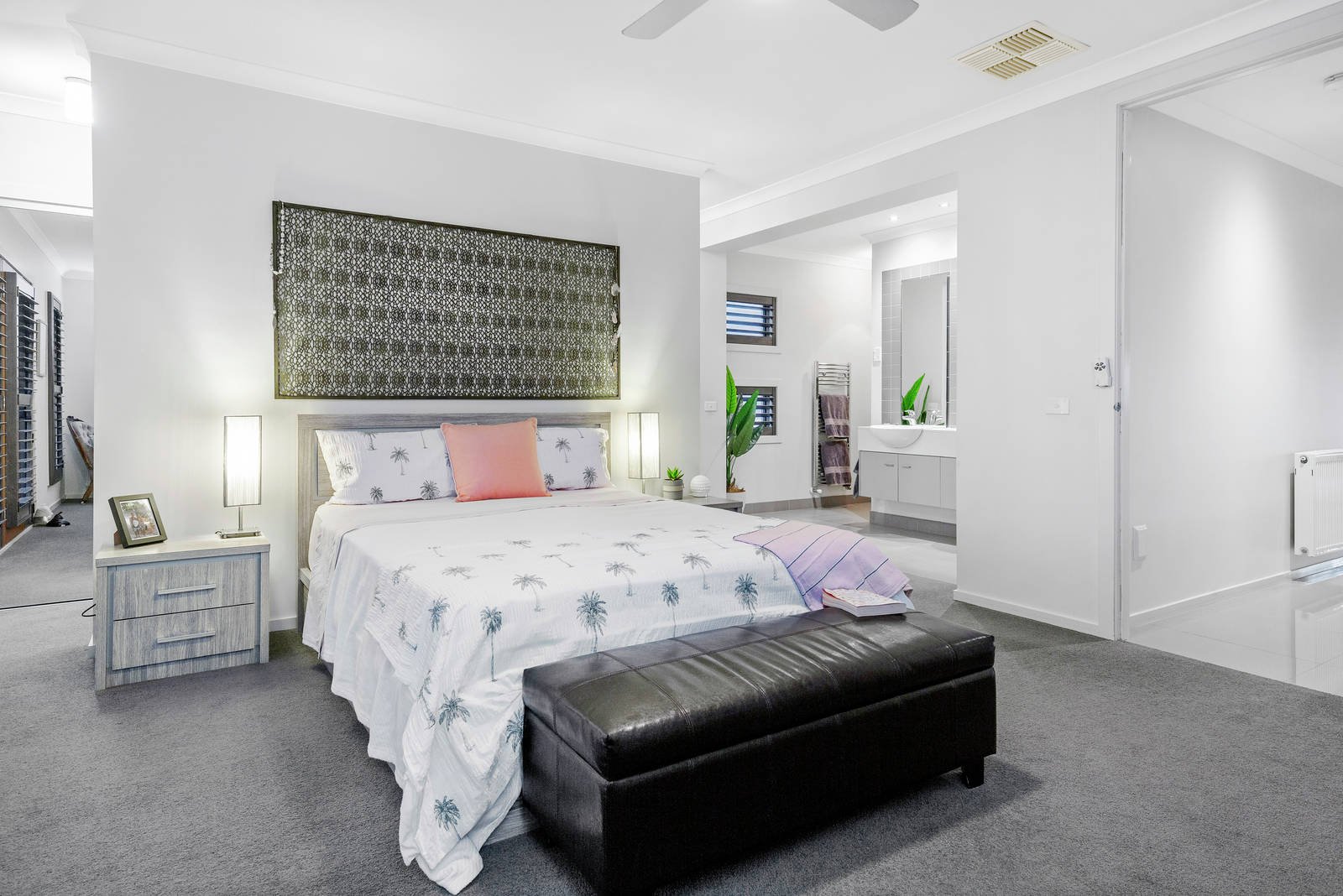 Cascading across the two levels, further zoned living spaces, master suite inclusive of bay views, private front balcony, large WTR and open ensuite with private WC, ample storage, powder room, three lower-level bedrooms, and an accompanying 'jack and jill' main bathroom.