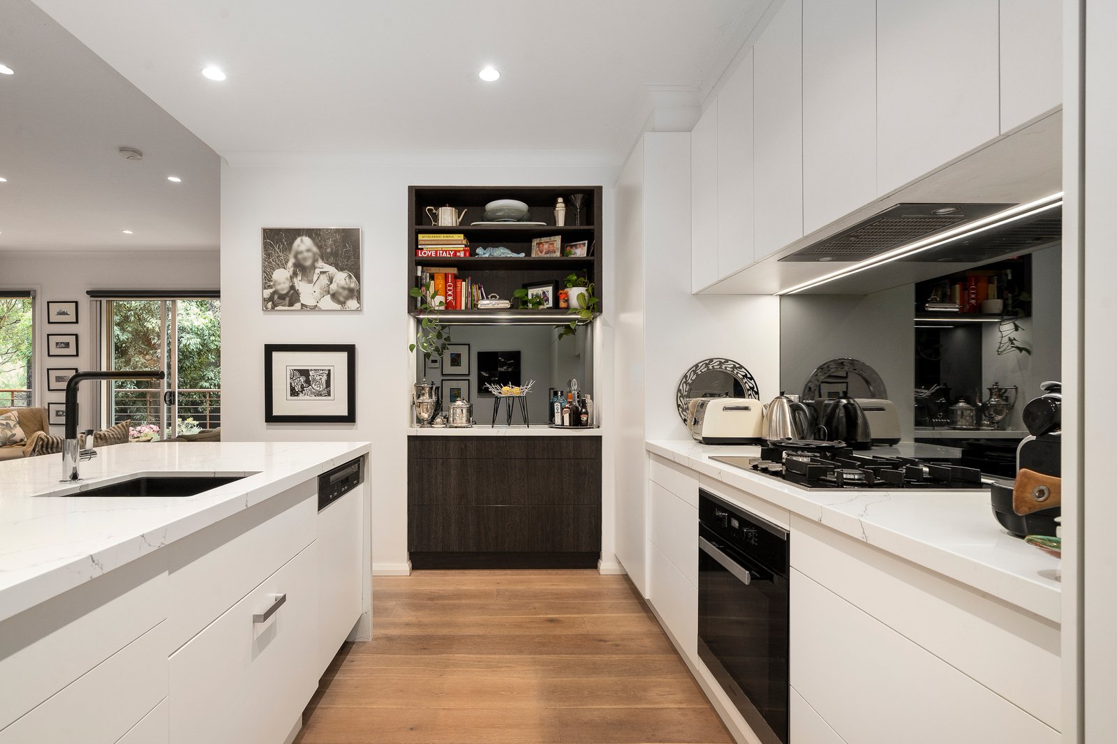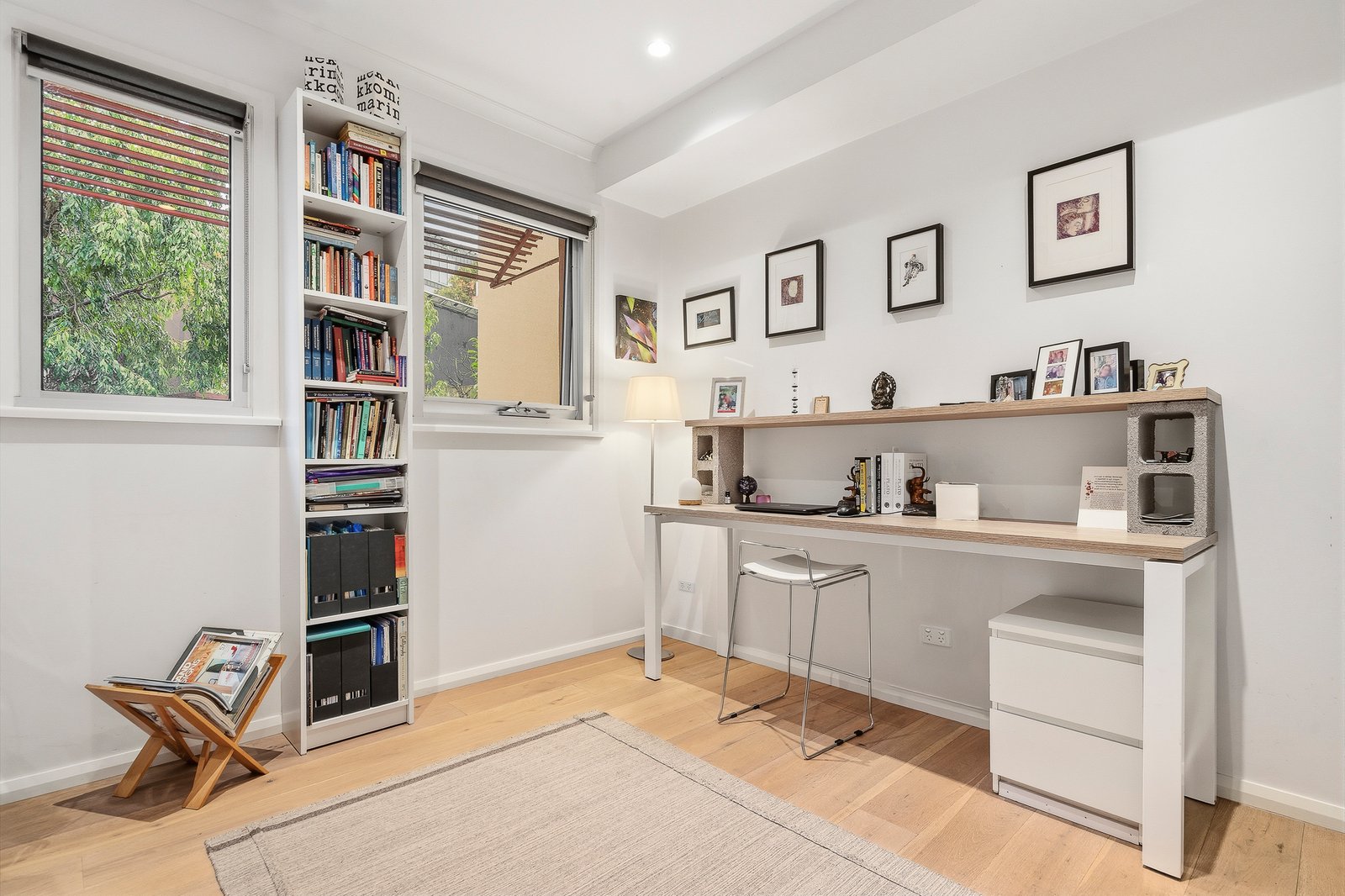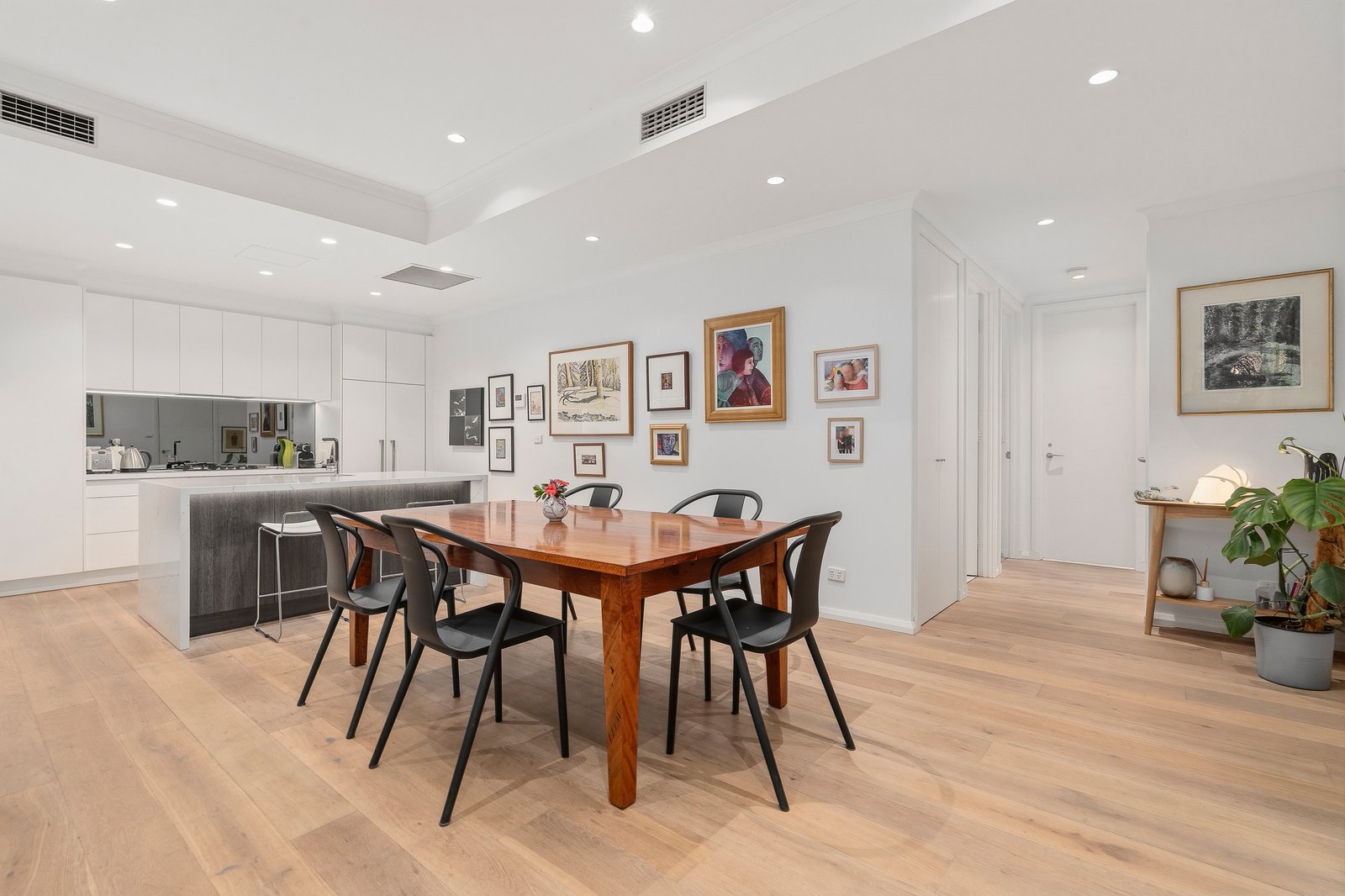 A lush garden walkway leads to this stylish contemporary residence, privately and securely positioned on level two at the rear of the complex. Presented in excellent condition following thoughtful updates, the apartment opens to a spacious north-facing living and dining domain with wide oak floors, complemented by a sleek kitchen featuring marble benchtops, premium Miele appliances and a Fisher & Paykel integrated fridge/freezer. An adjacent study, home office or optional third bedroom adds flexibility. Full-height sliding doors extend the living space to a sunny terrace—an inviting setting for a morning coffee or evening drink. Two generous double bedrooms include a main suite with dual walk-in robes, built-in robes and a private ensuite, both enjoying outlooks to the tranquil central fountain courtyard. A second pristine bathroom and separate laundry complete the accommodation. Additional features include video intercom and secure gated entry, ducted heating and cooling, a ceiling fan in the main bedroom, two storerooms (one shared) and remote undercover parking, along with visitor parking and the potential to lease a second car space if desired.