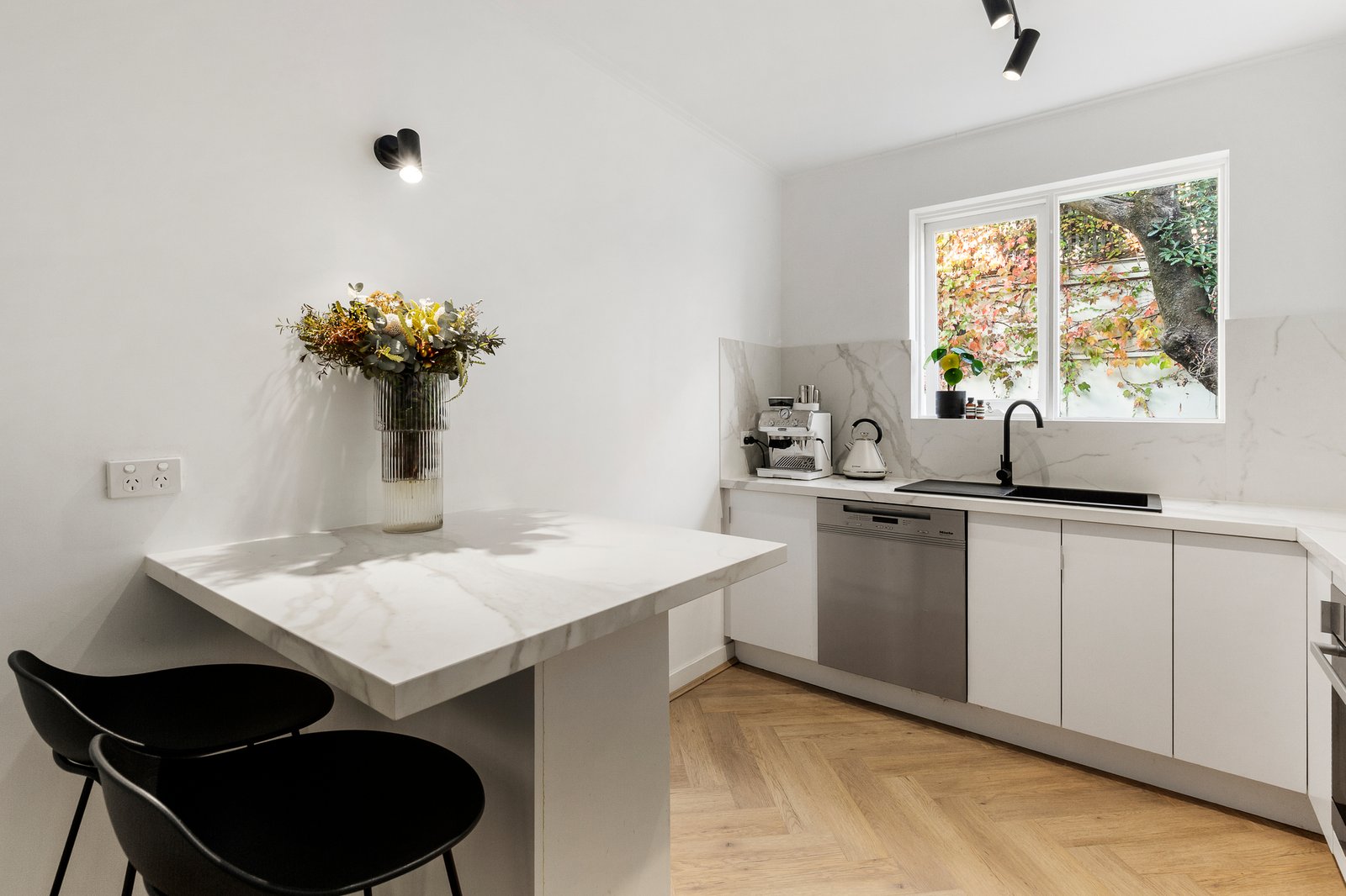 Presenting a sumptuous sense of back-of-the-block sanctuary within walking distance of Toorak Village, this remarkably spacious, single bedroom apartment has been comprehensively renovated to delight the most proud of home entertainers. Timeless elegance underpins a seamless connection to the home’s remarkably large and private multi-level deck and a backyard that is ideal for pet ownership as well as home entertaining, with brand new astroturf installed. With an impressive eye for detail, the kitchen and meals area has been updated with stone benches - including a central breakfast counter – as well as premium Miele appliances, all of which is separate to the vast dining and living area and united by attractive Herringbone-style flooring. Effortlessly, the open-plan extends outdoors to a deck that basks in glorious morning sunshine, plus there is a fully tiled designer bathroom with a walk-in shower and a concealed laundry, as well as secure undercover parking, intercom entry, split system heating and air conditioning.
