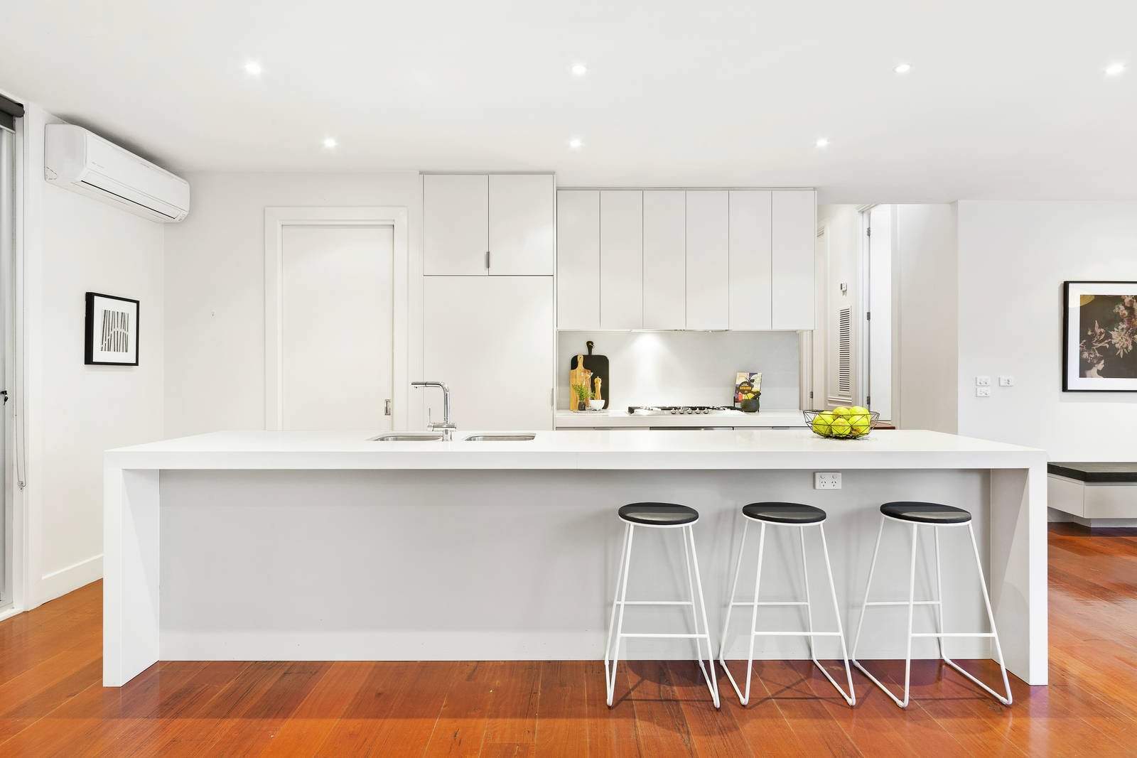 The light-filled interior features high ceilings through the central hall, gorgeous main bedroom with walk in robe and designer marble en suite, three additional bedrooms with built in robes and a stylish bathroom. Generous in scale and featuring wide timber floors, the sun-drenched living area with pebble fire and equally spacious dining zone are either side of a sleek gourmet Bosch/Miele kitchen boasting white stone benches, integrated fridge freezer and a walk in pantry. Beyond the dining space, an inviting sitting area or retreat is warmed by a gas fire. Full width glass sliders open the living to the picturesque private northeast garden with striking lap pool and large bluestone terrace.