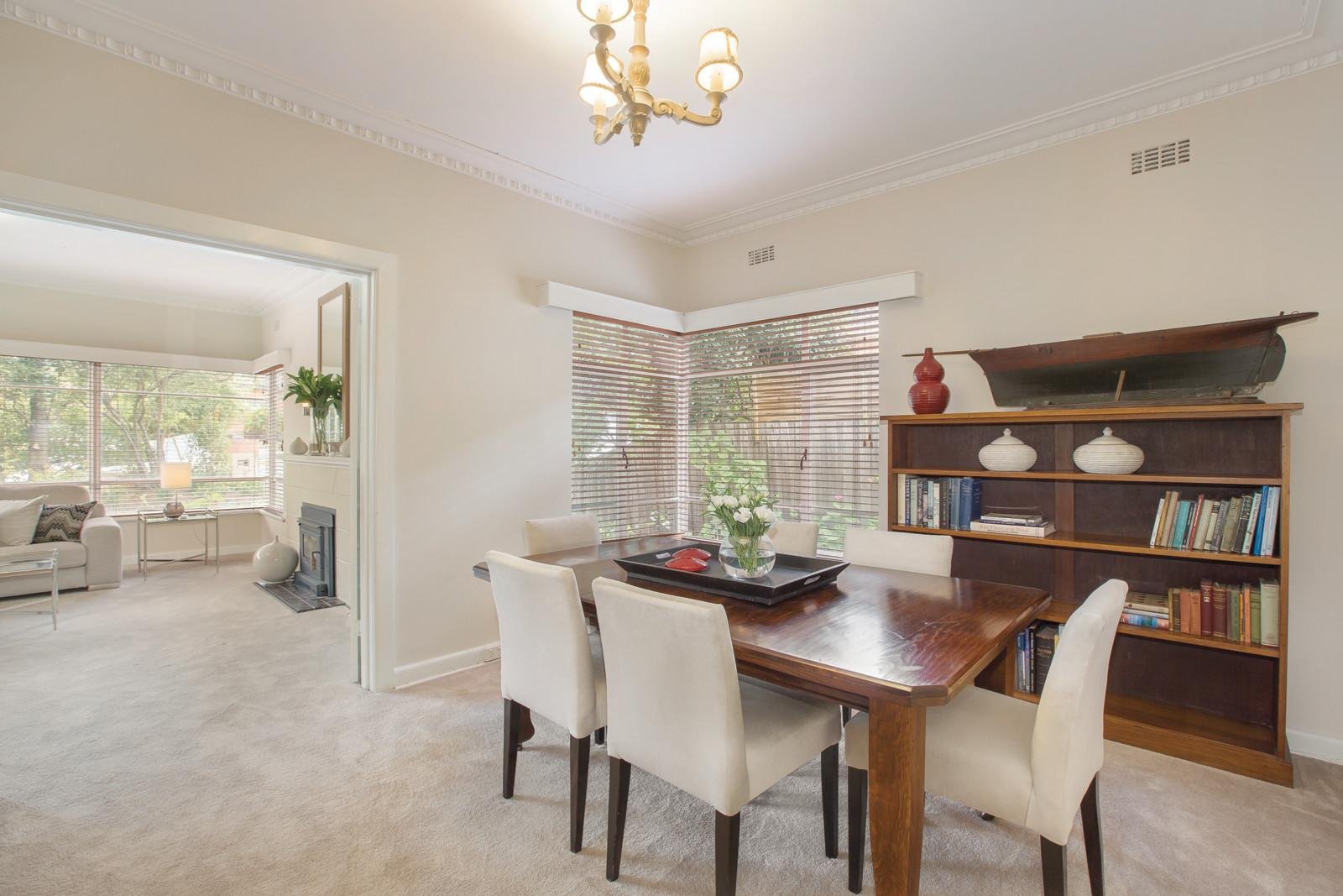 Designed in 1956 with a focus on providing natural light and a sense of space, this solid brick residence's immaculate dimensions are still as superbly effective for today's family lifestyles. Ideal to just move in and enjoy, it also provides the perfect foundation for an easy renovation or extension in a desirable location near Ashburton Village, Leo's Supermarket, Burwood station, Anniversary trail and schools. The central entrance hall introduces a study, generous living room with wood fire and inviting dining room all boasting classic wide corner windows. Featuring a Smeg oven and timber floors, the fully appointed kitchen includes a casual meals area. Three bright and spacious bedrooms and an upstairs 4th bedroom with study area are accompanied by a pristine original bathroom. Brilliantly situated within a deep private garden, this attractive home also includes ducted heating, air-conditioner, laundry and double garage. Land approx. 676sqm