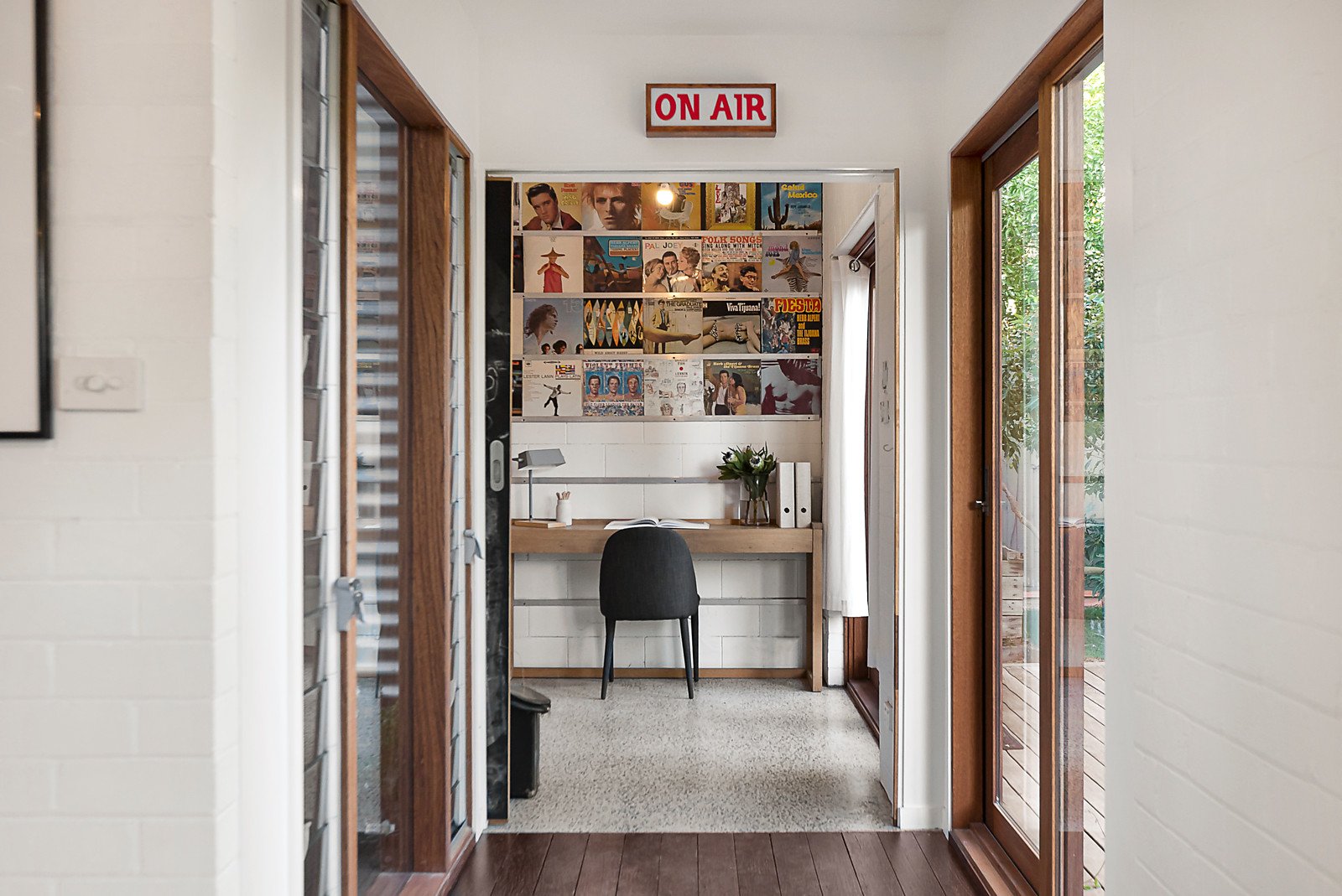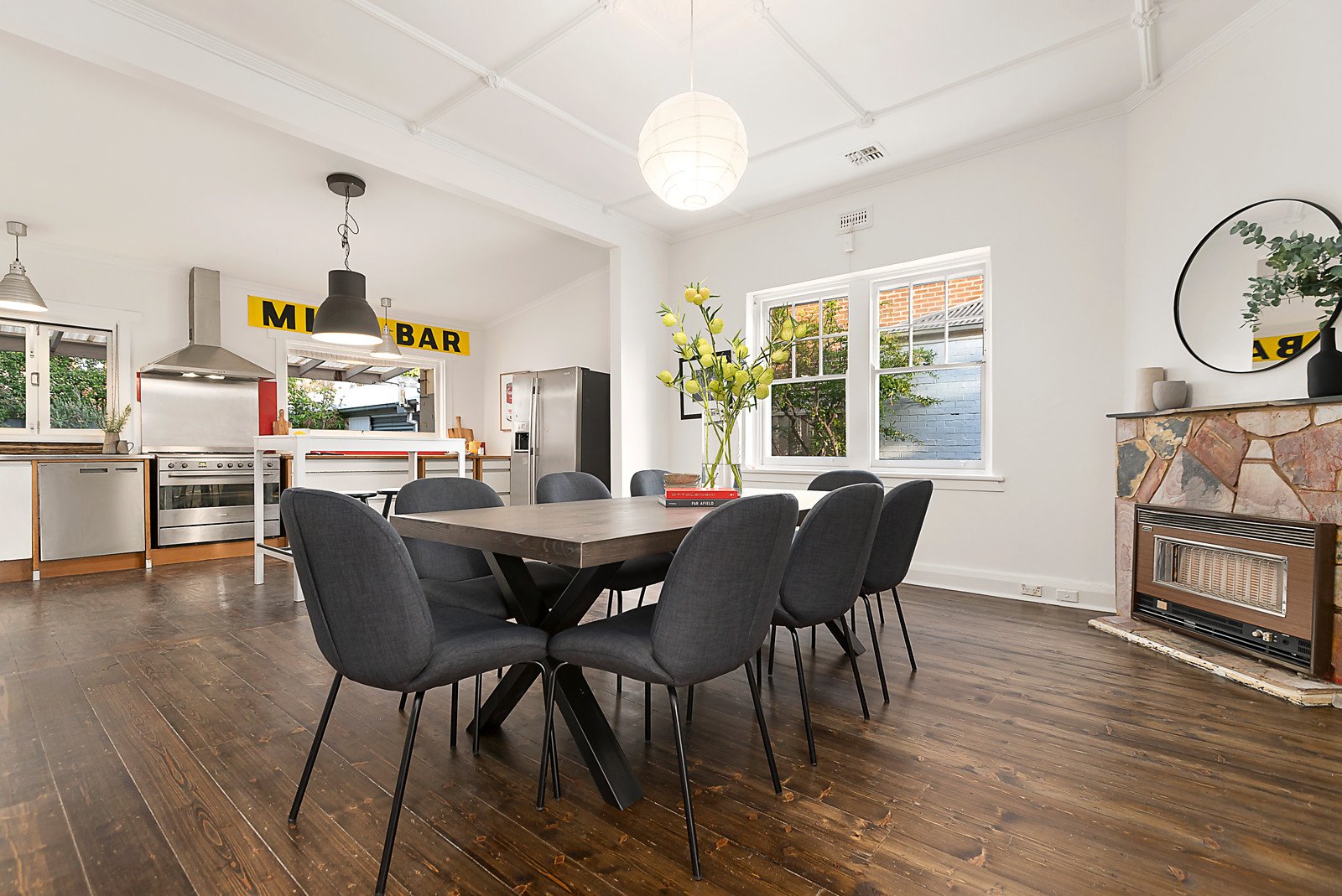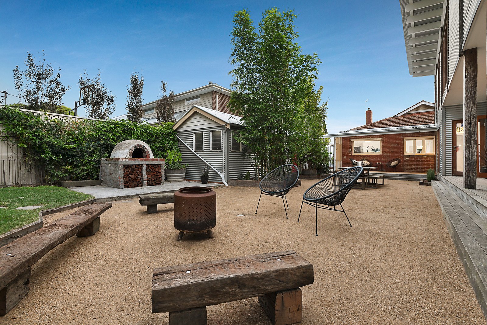 Dark timber floors flow through the central entrance hall to an exceptionally generous dining area and well appointed kitchen featuring a 90cm Smeg oven. Polished concrete floors mark the start of the striking extension featuring timber from the original Maribyrnong Bridge and comprising an expansive living room warmed by a wood fire heater and media or music room. Bi-fold doors open the living spaces to a private leafy west-facing garden with wood fire pizza oven and large garage/store-room. Bathed in light, the spacious main bedroom with walk in robe, stylish en suite and a retreat or study enjoys its own space upstairs. Three additional double bedrooms are accompanied by a chic bathroom, study nook and fabulous upstairs rumpus room.