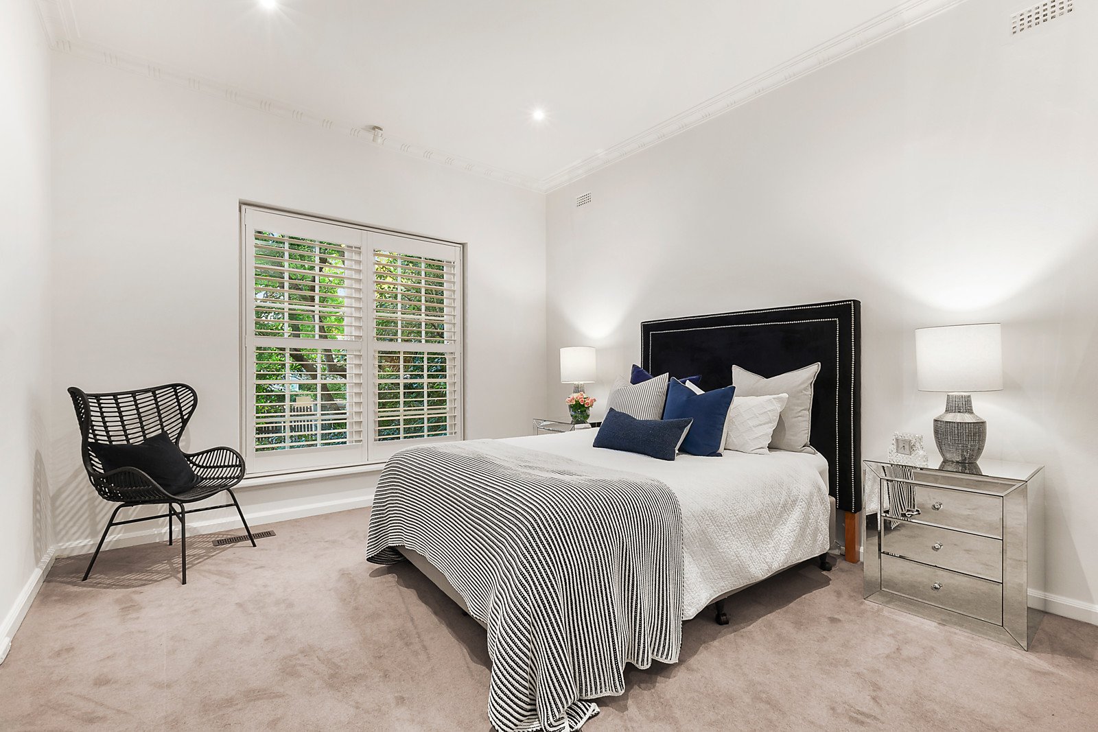 Hidden behind a high fence, the immediate charm of the house is apparent - set amongst lush, manicured gardens, it has just been updated with a fresh colour scheme both inside and out.