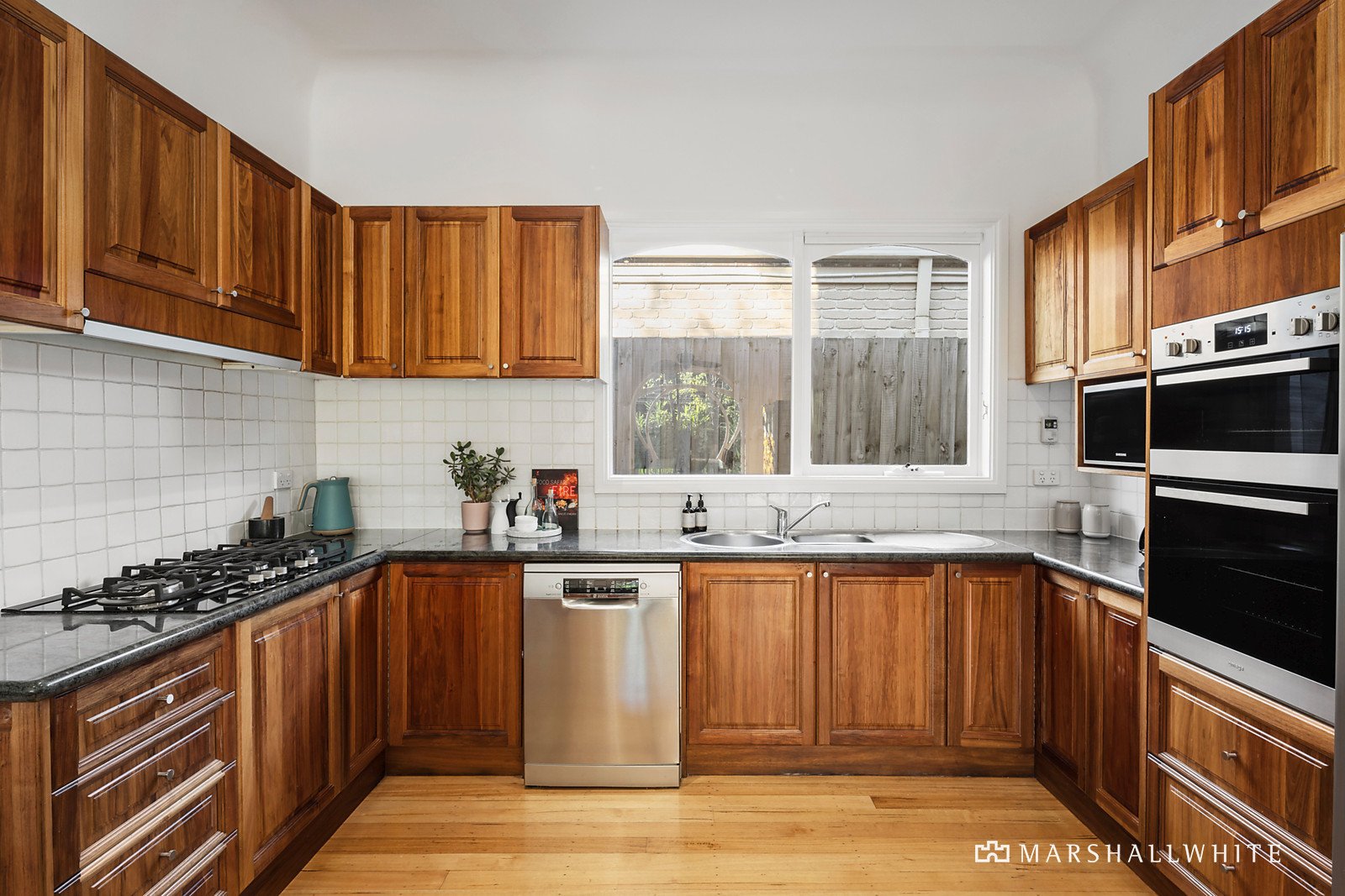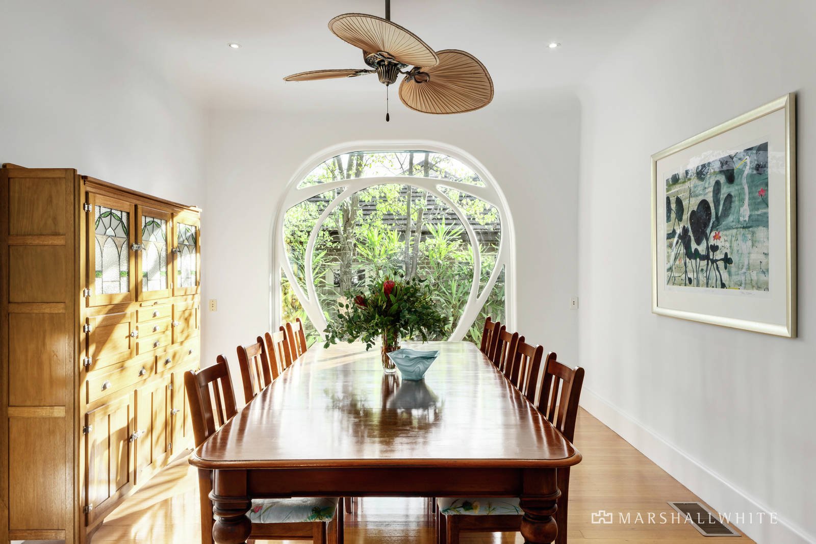 Streaming with natural light, the central entrance hall featuring hardwood floors flows through to a gourmet granite kitchen and stunning dining room overlooking the garden through a striking custom designed picture window. The exceptionally generous living room opens out to an expansive deck and the private garden with a garage accessed from Marion Avenue, versatile studio and wine-cellar. The main bedroom with designer ensuite and built in robe, two additional bedrooms with built in robes, a home office and stylish bathroom are serenely positioned on the ground level. A fabulous children's zone upstairs comprises two additional bedrooms with robes, a bathroom with separate toilet and large retreat with study nook.