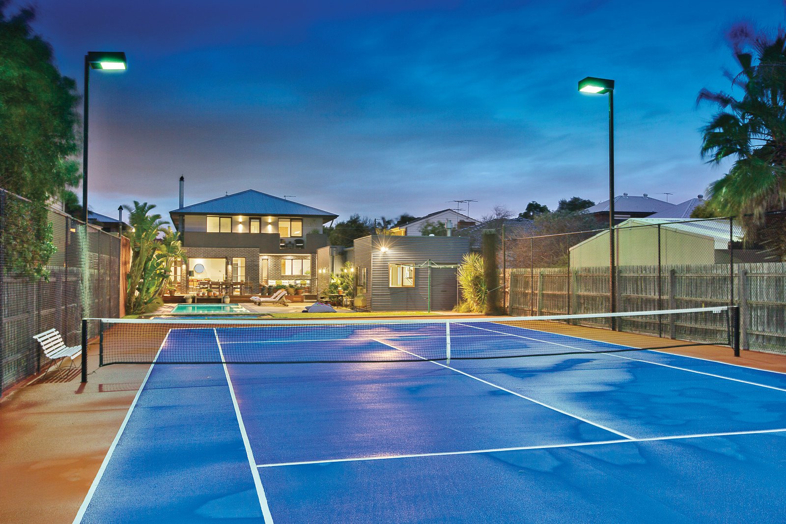 A spectacular family oasis can be yours, with a prestige home, tennis court and pool for the ultimate in deluxe living. Builder's own home is custom-designed with the finest craftsmanship and effortless contemporary style on huge land. Three large living areas, four bedrooms and a study, a state-of-the-art kitchen and three bathrooms offer everything you could wish for, including a home theatre, 1200-bottle wine cellar, parents' retreat, and an extensive list of premium features. This is one of McKinnon's biggest addresses, with 1438 square metres of land approx and your own gate onto the Elster Creek Trail. No expense has been spared in creating a spectacular way of living. Fine design shows in the huge Caesarstone kitchen, custom cabinetry is superb in the family room and upstairs kids' retreat, and bathrooms are big on space and quality finishes. Outdoor living is state-of-the-art with a large spotted gum deck featuring an undercover area and concealed storage, gas and solar-heated pool, Plexipave tennis court with practice wall, inground trampoline, and adjacent kitchenette and bathroom. Exacting planning incorporates 10,000 litres of underground water storage, Ilve and Miele appliances, beautiful timber floors and staircase, undercover outdoor areas, storage zones, suspended fireplace in the family room, ducted vacuum, automatic gates, large garage and a carport, and corten steel garden features. Prized location bordered by parkland and close to schools, public transport and shops.