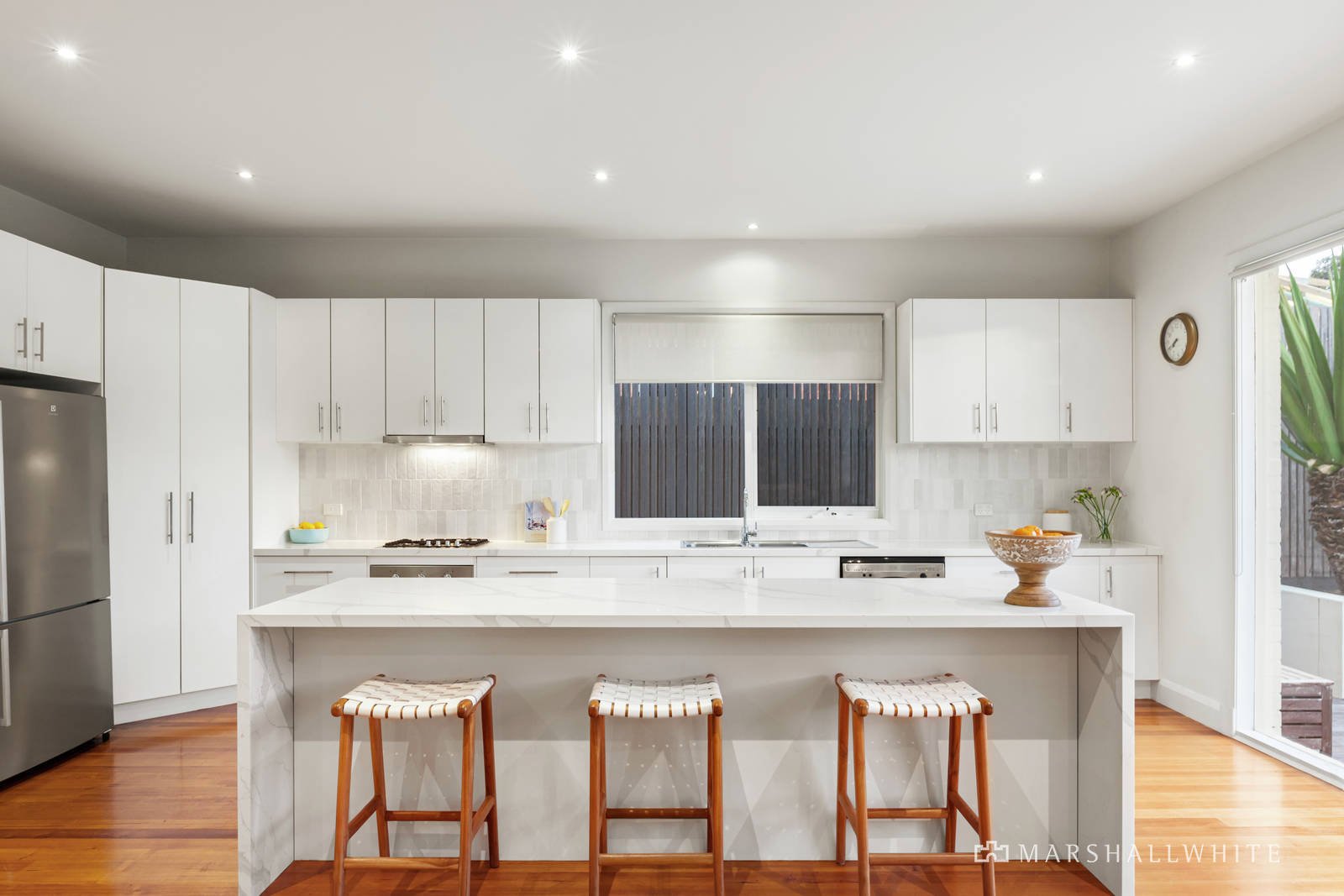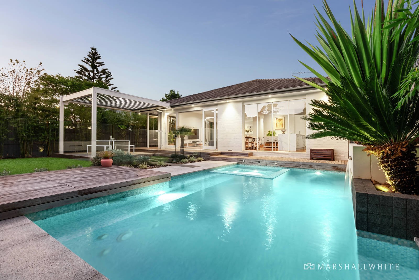 Outstanding single-level home is a family oasis with excellent features and an ultra-convenient location near schools and parks. Newly updated and with the luxury of poolside outdoor living, this solar-powered home is instantly impressive with two generous living zones, four bedrooms or 3 bedrooms and a study/home office, and contemporary land-scaping. There's nothing to do but move in and enjoy the new-look kitchen, laundry, ensuite and bathroom, the state-of-the-art self-cleaning automated pool with a spa, Bisazza mosaic tiles and wet-edge seating, and a stylish interior. Fine design starts with the timber boardwalk entrance and family-friendly garden with a deck and chalkboards, and continues into the spacious entry foyer, generous main bedroom with an ensuite and walk-in wardrobe, and each living zone. There's plenty of space for entertaining in the large family room and lounge, or outside on the deck with an automated louvred roof and views of the evergreen garden. The interior is precision-planned with solid timber floors and plantation shutters, new carpet, ducted heating and cooling, ceiling fans, a gas fireplace, and ladder-accessed roof storage. New Ilve appliances and premium marble-inspired stone benches add a contemporary edge to the kitchen, with direct views of the sun-filled pool and garden. Every feature for easy living is in place, including a 16-kilowatt solar power system, double garage, outdoor shower, a sun deck next to the pool, west-facing awnings, and pet enclosure. Make this yours and love being within walking distance of Haileybury and St Leonard's College, and in the Brighton Secondary College zone. Dog-friendly Wishart Reserve is around the corner, Hampton Street's shops, cafes and transport are minutes from here, and it's an easy walk to trains and buses.