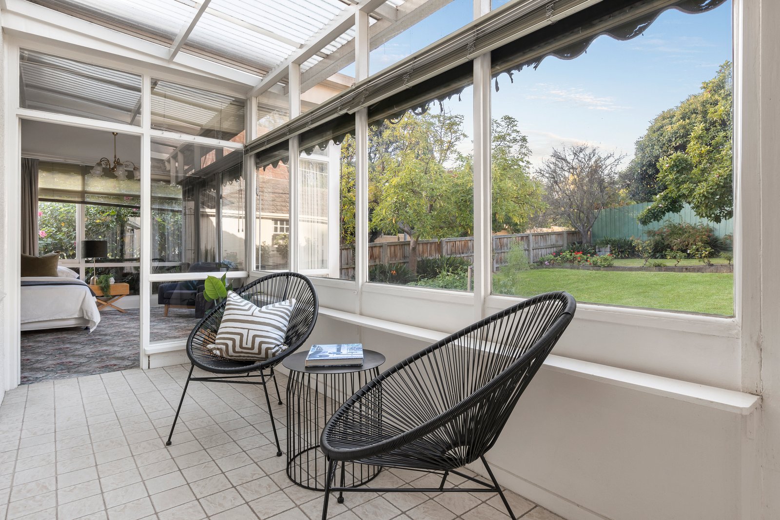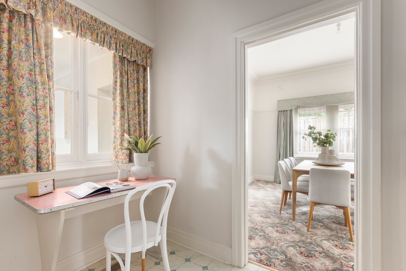 The flexible interior currently features a wide entrance hall opening to a formal sitting room with adjacent dining room, two bedrooms, dual access family bathroom and a generous informal living room or third bedroom. Through to a stylish modern kitchen with timber cabinetry, Bosch, Blanco, Chef appliances and a WIP. Leading to a second bathroom and concealed laundry plus a sun drenched sunroom. The garden also has an external studio plus bathroom or home office. Other features include an alarm, Weather Wall air conditioner (informal living), ducted heating and cooling, garden storage and lock-up garage