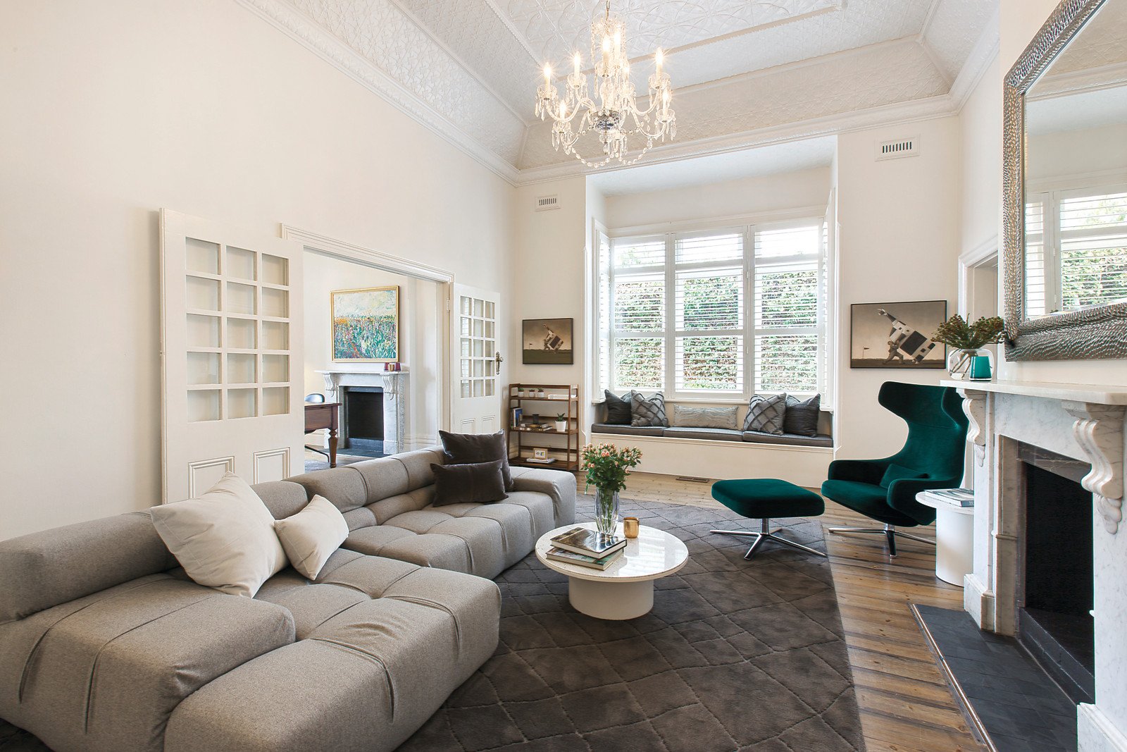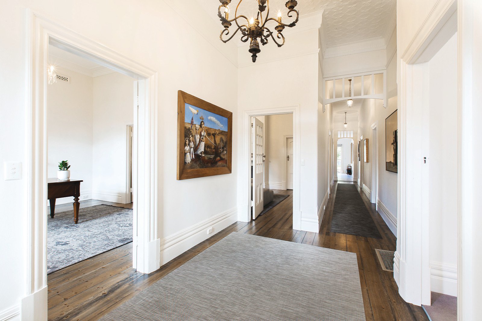 An irresistible first impression is created by a glorious pressed metal ceiling above the wide entrance hall. Stained Baltic pine floors flow through the hall to a refined study with marble fireplace and a gracious sitting room also with a marble fireplace, and an impressive vaulted pressed metal ceiling. An abundance of superbly proportioned accommodation comprises the main bedroom with walk in robe and en-suite, four additional double bedrooms all with built in robes and a family bathroom. Natural light streams through the spacious kitchen, living and dining room opening to an entirely private garden.