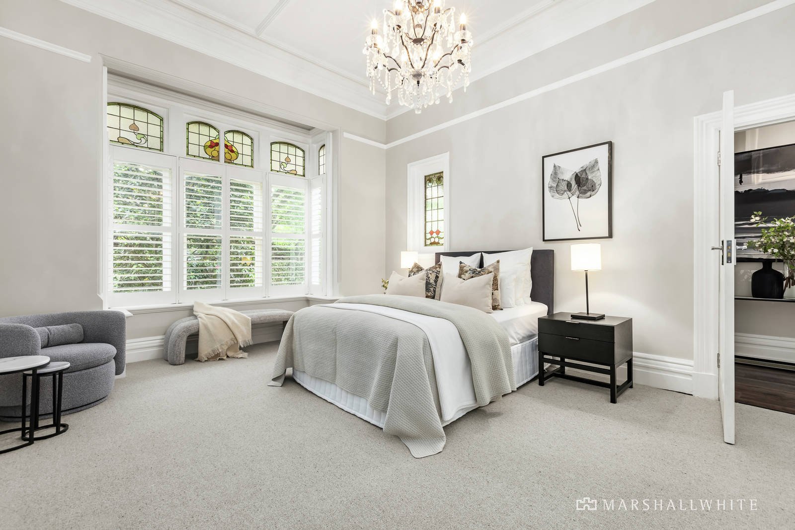 Magnificent ornate ceilings create an unforgettable impact in the wide central hall, lavishly proportioned library/home office and the expansive sitting room/lounge, both featuring leadlight windows and open fires. Rich dark oak floors flow through the exceptionally spacious open plan living and dining room with a premium gourmet kitchen impeccably appointed with Miele appliances including a steam combi oven, integrated Liebherr fridge/freezers, Vintec wine fridge and stone benches. French doors extend the living and entertaining options out to wide return verandah and stunning northeast facing landscaped gardens with large terrace, fountain and picturesque north-facing solar-heated pool. With a bay window overlooking the front garden, the captivating main bedroom with fireplace, built in robes and designer en suite is matched by a second bedroom with fireplace and a children's wing comprising two additional robed bedrooms and a stylish bathroom.