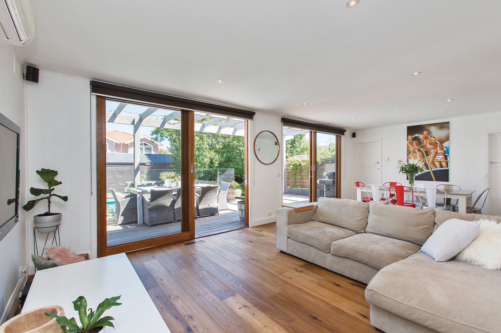 Renovated to perfection, this stylish home is idyllic for relaxed family spaciousness and poolside outdoor living. The sense of space and light is wonderful, with a north-facing lounge, timber-panelled family room looking out to the resort-style pool, and Quantum Quartz luxury stone kitchen with pullout pantries, Miele dishwasher and induction cooktop. Five bedrooms are spread over two levels, the upstairs kids' zone features a built-in storage seat, and both bathrooms are like new. There's nothing to do but move in and enjoy the high standard of features and fit-out, and the location with Hampton Street just 200m away. American Oak floors, plantation shutters and a gas log fireplace add a refined edge to this welcoming home. Landscaped to perfection, there's Australian bluestone paving, a vine-shaded deck, outdoor shower, and a shady hammock nook. The tiled pool is solar-heated, there's undercover outdoor storage, and families will appreciate the private and secure play space. A wonderful location in walking distance to cafes, schools, trains and the beach.