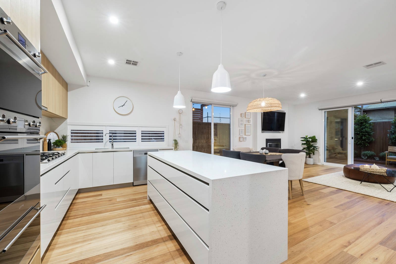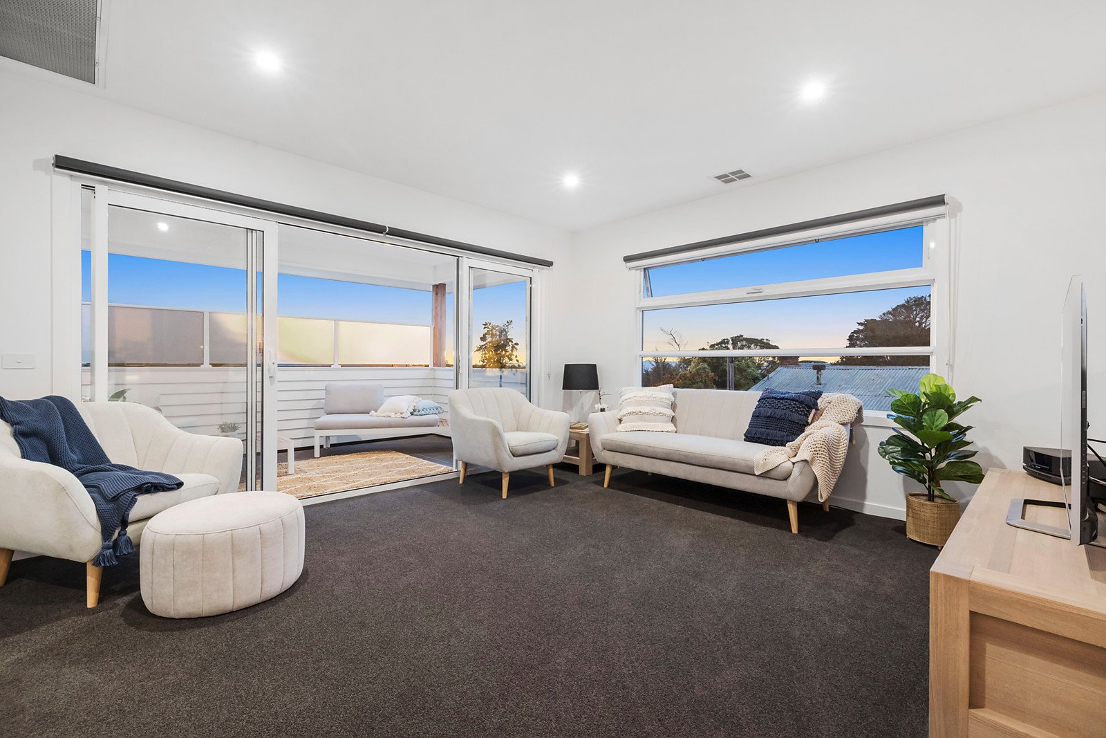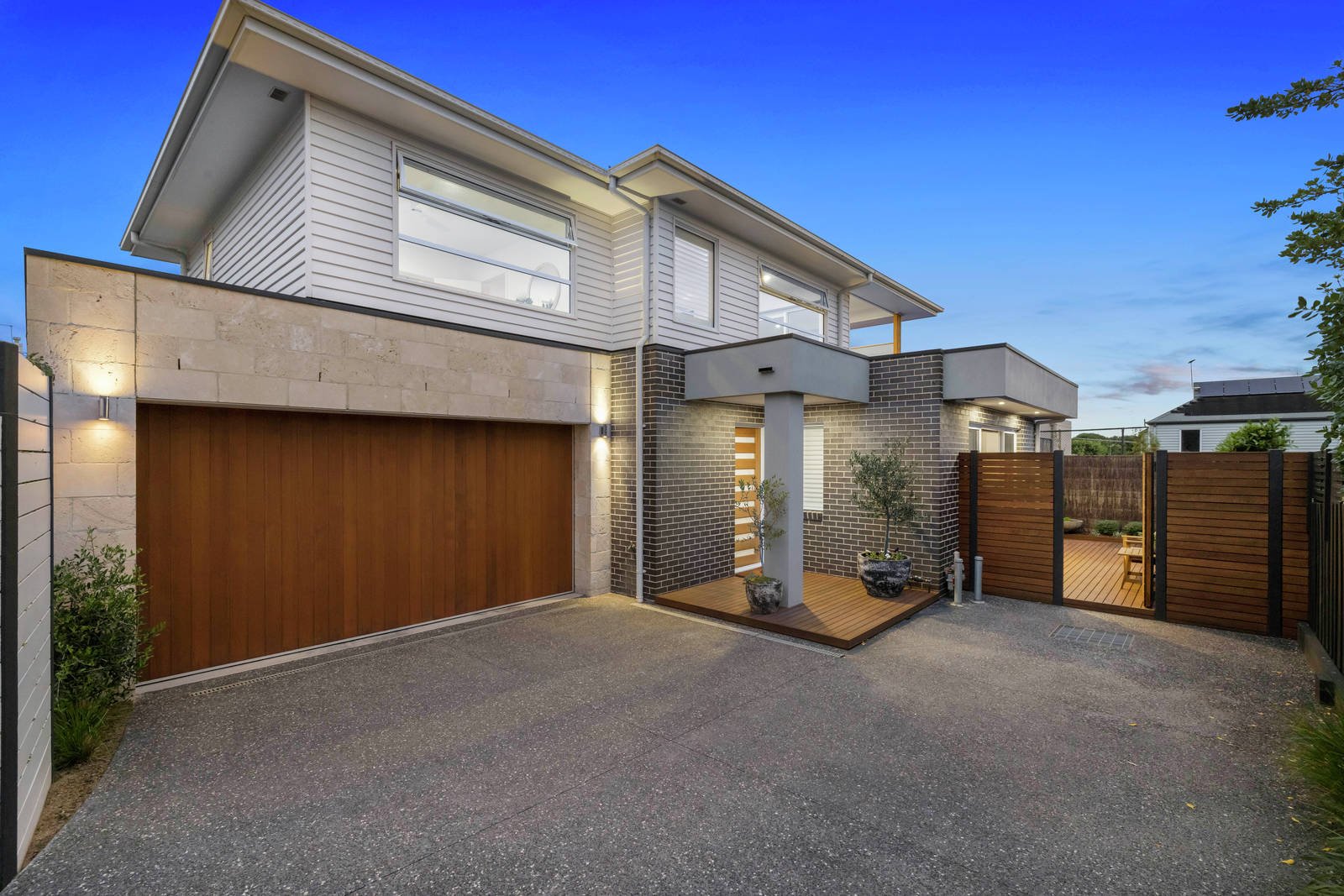 Encapsulating all that is desirable in a contemporary home it boasts a distinctive façade and offers an interior which exudes style and maximises light and space. Featuring engineered oak flooring through a generous living and dining area with adjacent powder room, laundry and including a sleek CaesarStone kitchen equipped with prestige Smeg appliances; flowing through sliding doors to a sun-drenched wrap-around deck perfect for alfresco dining or entertaining. Complemented by four bedrooms with the flexibility of a down or upstairs main bedroom each with a WIR and ensuite, the third and fourth bedrooms with BIRs, plus a family bathroom and superb upstairs retreat opening to a balcony with bay views - the perfect place to watch the sun set or seasonal changes.