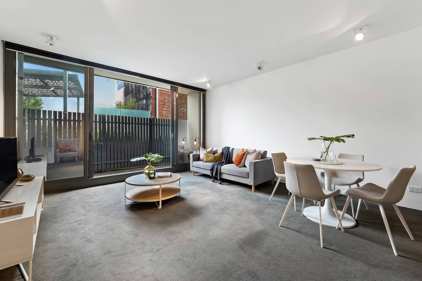 A state-of-the-art apartment that radiates an urban attitude as sophisticated as its enviable Chapel St location, this sleek, two bedroom, designer residence is certain to inspire awe. Highly secure and superbly appointed with a sense of creativity that will distinguish it from others, this contemporary home is the ideal base for you to immerse yourself in a lifestyle enriched by some of Melbourne's most popular cafes, bars, restaurants and street culture. Exposed stone benches and a selection of concealed and stainless steel SMEG appliances, the home's galley-style kitchen is a low-profile space that flows effortlessly to an open-plan living area and through double-glazed sliding doors to an attractive balcony. As it frames views of the Prahran Town Hall Spire, this is a living zone with a particularly attractive backdrop. Accessed securely via video entry, full size basement parking and an elevator, the apartment also features a bold bathroom in which mosaic feature tiling compliments a circular shower, plus robes in each bedroom, a study nook and access to another courtyard. Simply step out the front door and live the life you love amidst the fine food, edgy bars and amazing fashion of Chapel St and Greville St, plus you have Prahran Market within easy reach, plenty of trams and trains, Princess Gardens and the popular grassy expanses of Prahran Pool nearby as well.