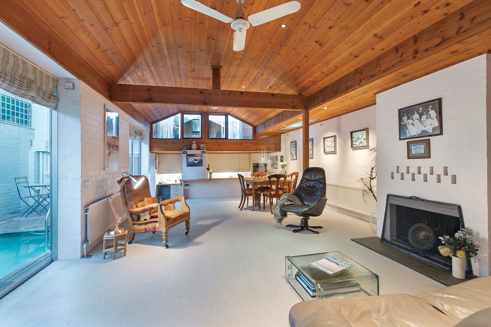 Designed by architect Peter McIntyre and completed in 1986, this solid brick home comprises versatile accommodation including open plan living/dining and kitchen opening out onto a 14m lap pool and terrace, an upstairs studio/second bedroom with its own private deck, and a substantial garage/utility room complete with integral workshop and enclosed study area. Designed to attract natural light and full of winter sun, this unique home also includes a second bathroom, an ensuite main bedroom equipped with sizeable bathroom and plentiful robing, clever storage, security gate and side access via a shared laneway.