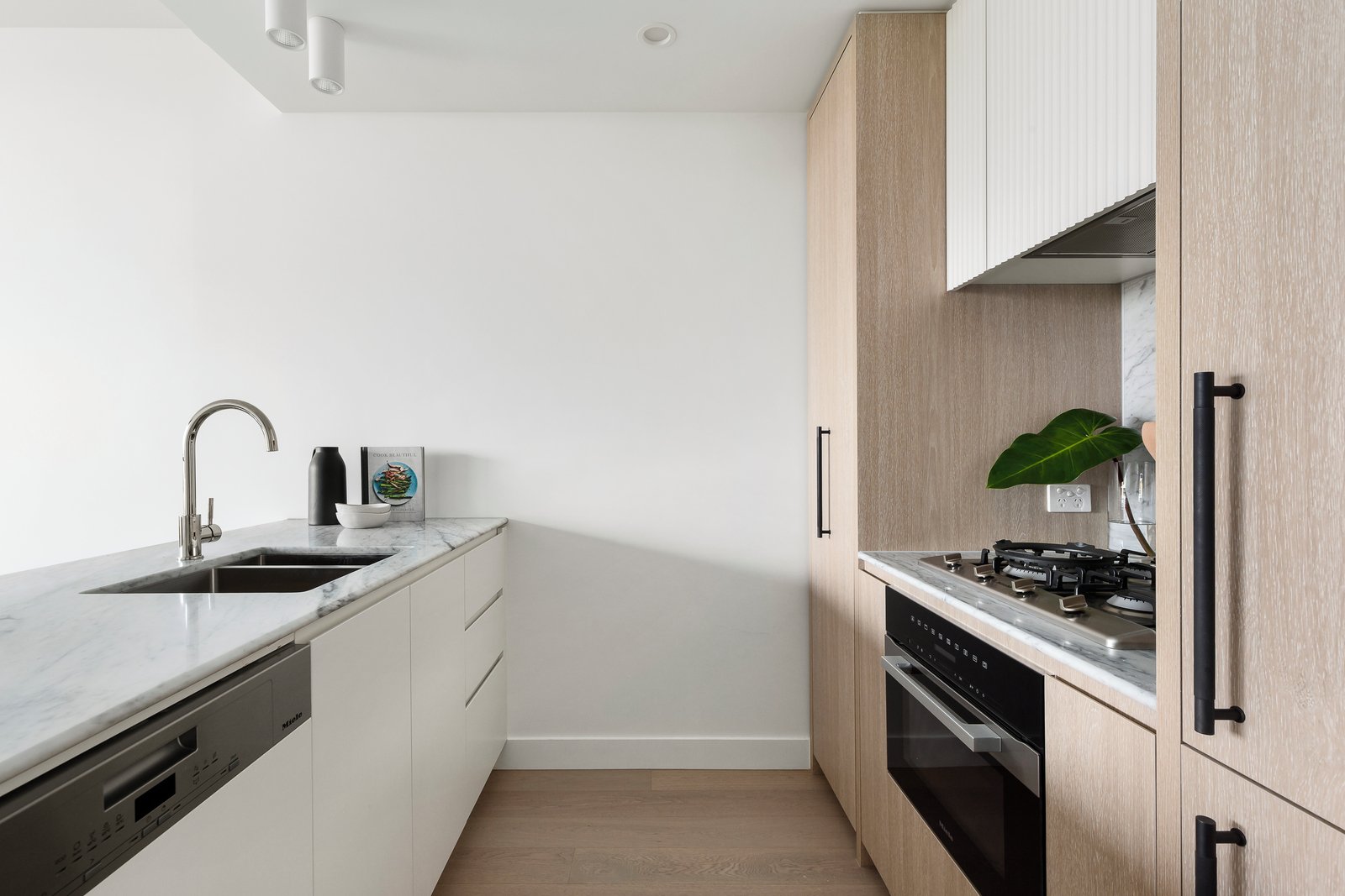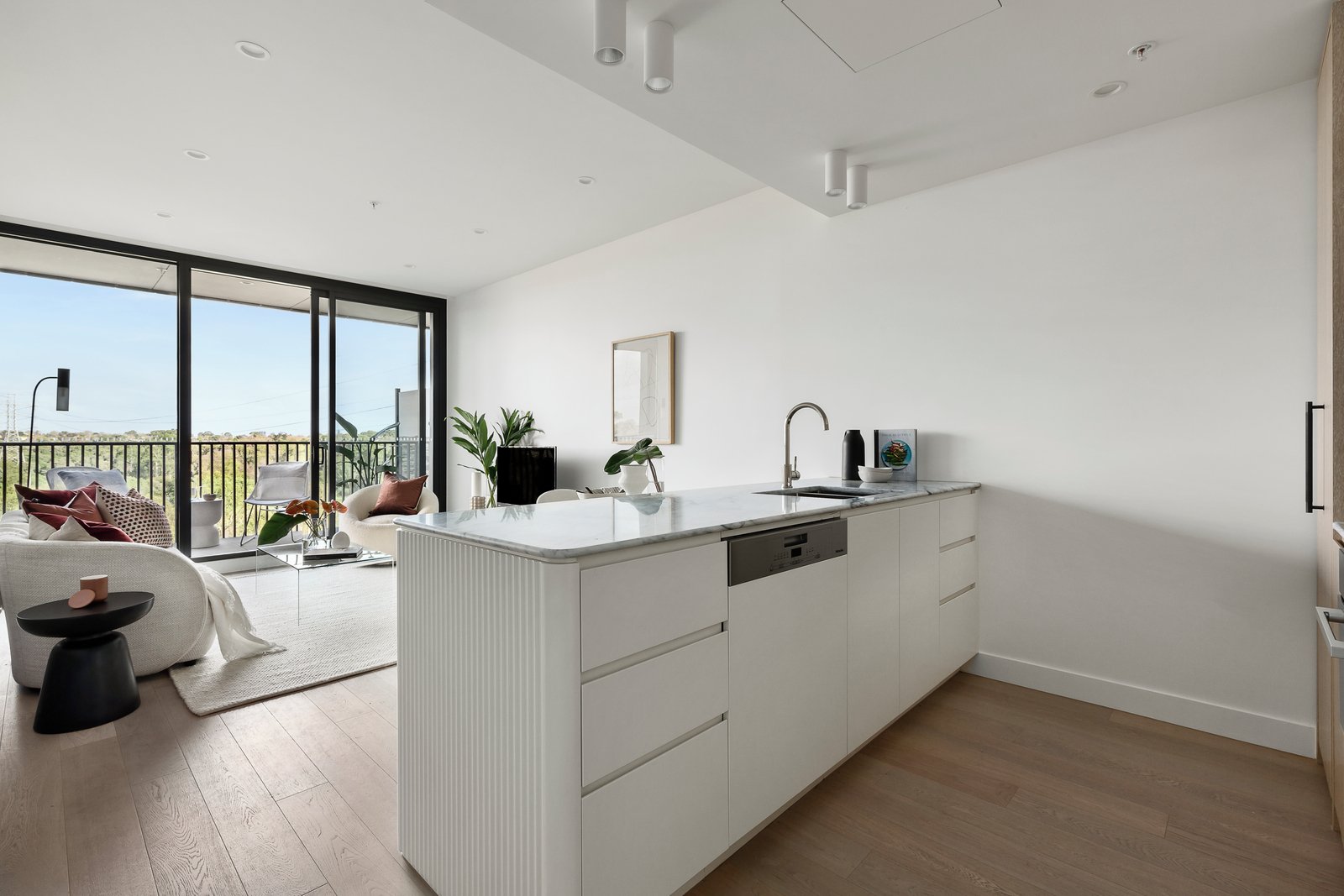 With a streamlined designer efficiency, a Miele-equipped kitchen with natural stone benches is complemented by the finest 2-Pac and woodgrain cabinetry and an integrated Liebherr refrigerator, as open-plan dining/living flows to a balcony backed by expansive views over Gardiners Creek parkland. Fully double glazed, this whisper quiet apartment also offers a fully tiled ensuite with natural stone feature tiling, as well as built-in robes in each bedroom, a study nook, European Oak flooring, split system heating and air conditioning.