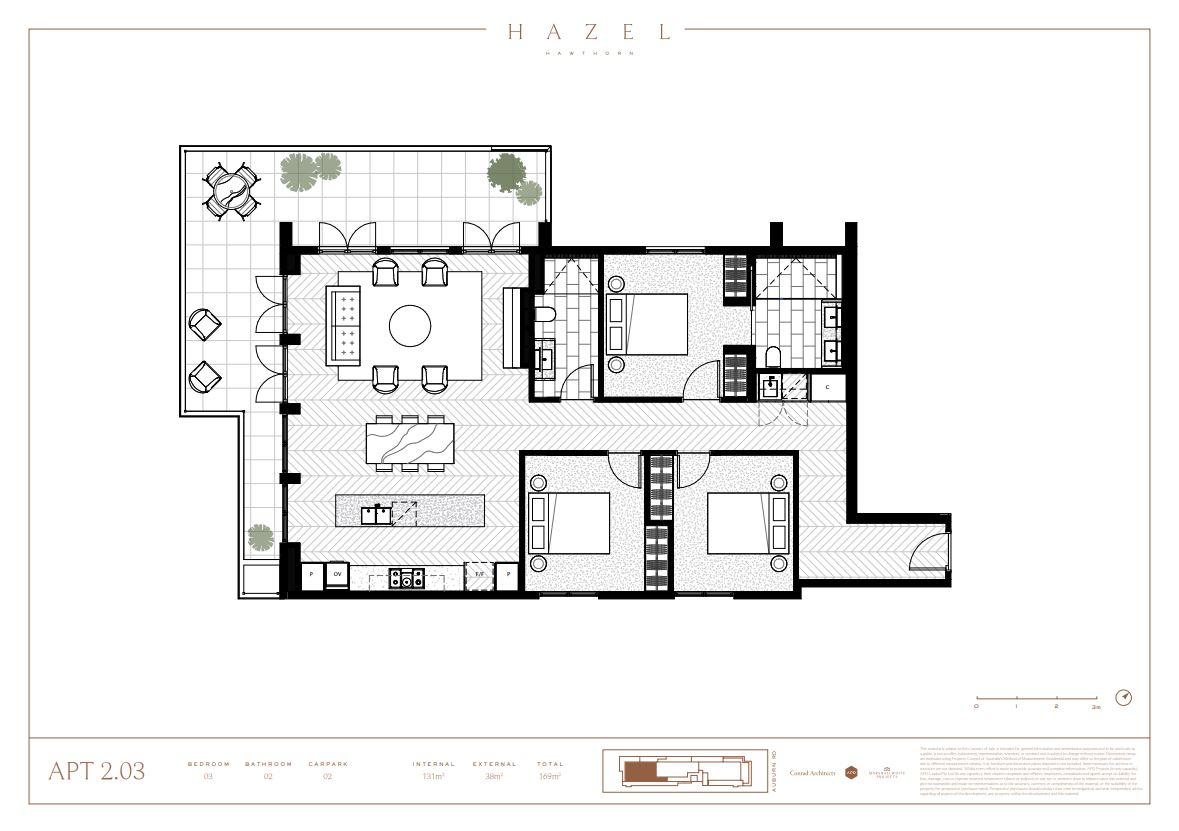 Inspiring of Hawthorns natural landscape, Hazel’s architecture perfectly balances natural materials with glazed aluminium windows, dark powder coated steel balustrades and expansive French doors to create a subtle expression of strength and grace.