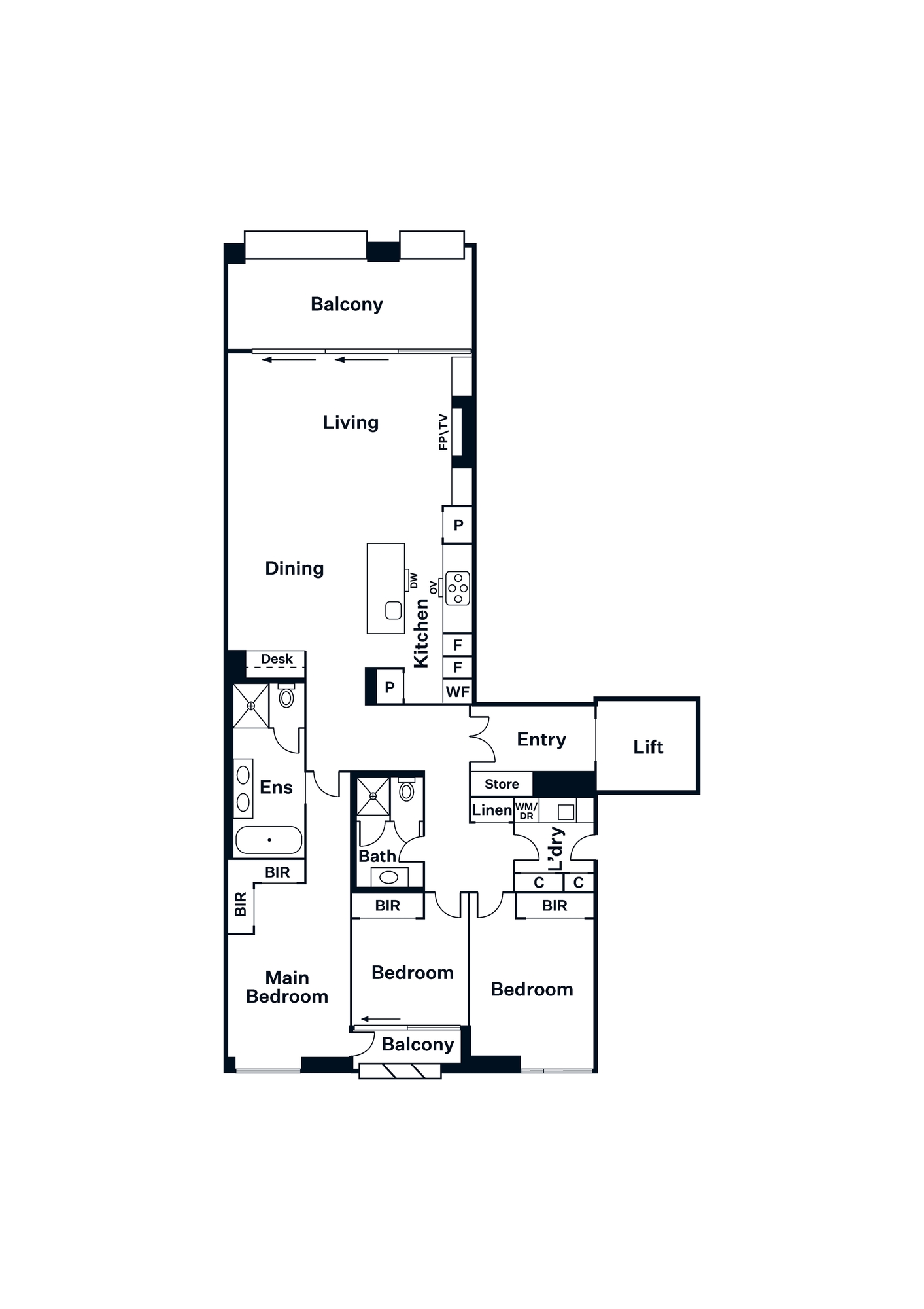 Finishes are uncompromising: high ceilings, timber floors, bespoke joinery, and oversized pivot doors establish a sense of refined luxury, while the gourmet kitchens feature natural stone benches, Wolf appliances, premium Dutch PITT cooktops, and integrated fridge/freezer.