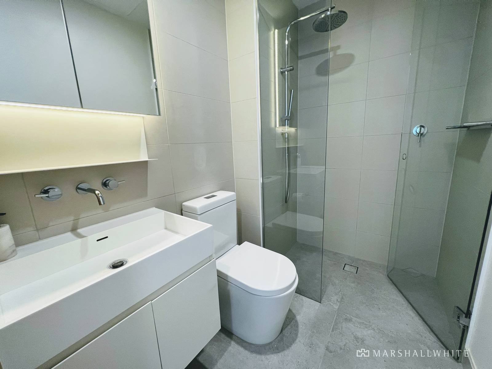 Miele appliances are complemented by striking, waterfall-edged stone bench tops and an integrated refrigerator in a flawlessly-appointed kitchen that overlooks open-plan living. Huge double-glazed sliding doors provide the al fresco flow to ensure the space is perfect for a cheeky summer's drink or a BBQ. Highly secure with video entry, basement parking, a storage unit and fob-accessed elevator, the home also features broad Oak-style flooring, a European laundry in the bathroom, split system heating and air conditioning.