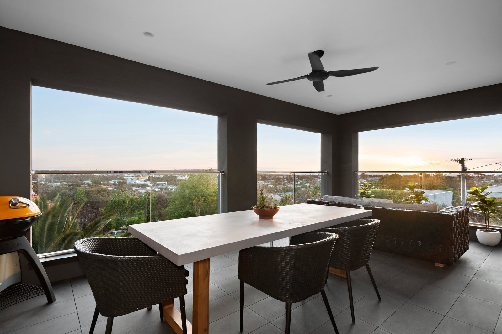 Elevated high on Beleura Hill with Bay vistas encompassing Arthur’s Seat, The Heads, The You Yangs and Mornington township, this five bedroom plus study contemporary home celebrates high-end resort-style family living and entertaining with a focus on low maintenance functionality, and an adaptive layout incorporating the latest in technology and sustainability.