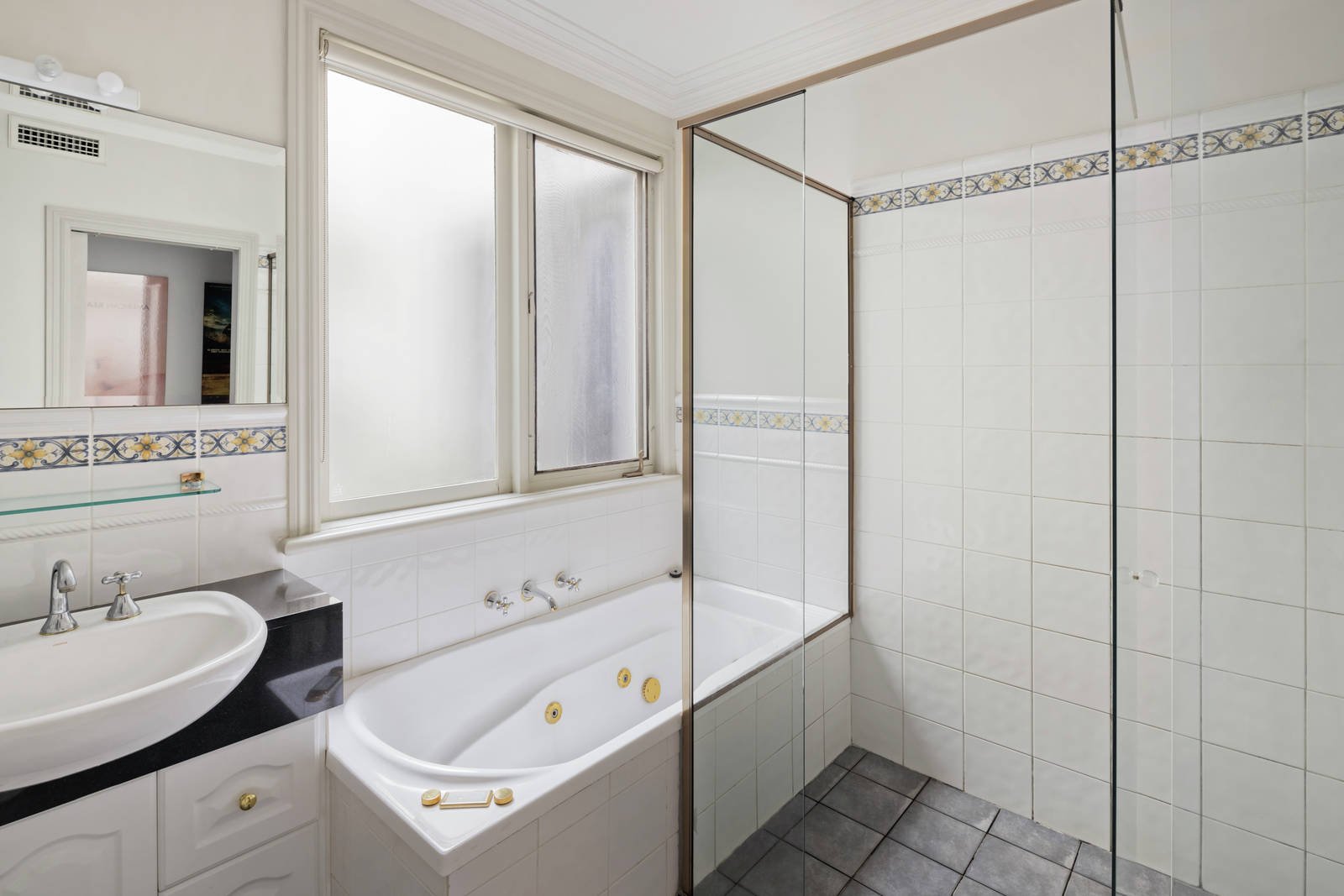 Black granite benches provide a striking contrast to the volumes of glossy white cabinetry and superior stainless steel appliances in a kitchen that overlooks dining and living as well as a brilliant study. Secure carport parking is a huge drawcard in a home that also offers a bathroom that is adjacent to bedrooms and a powder room adjacent to living, plus there is central heating, air conditioning, an alarm and polished timber flooring.