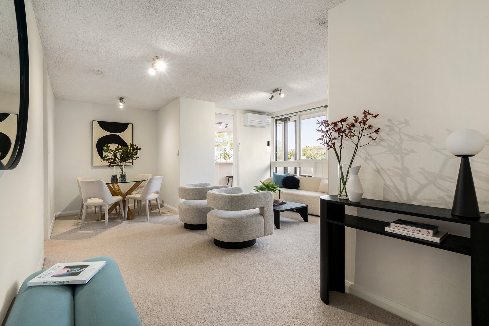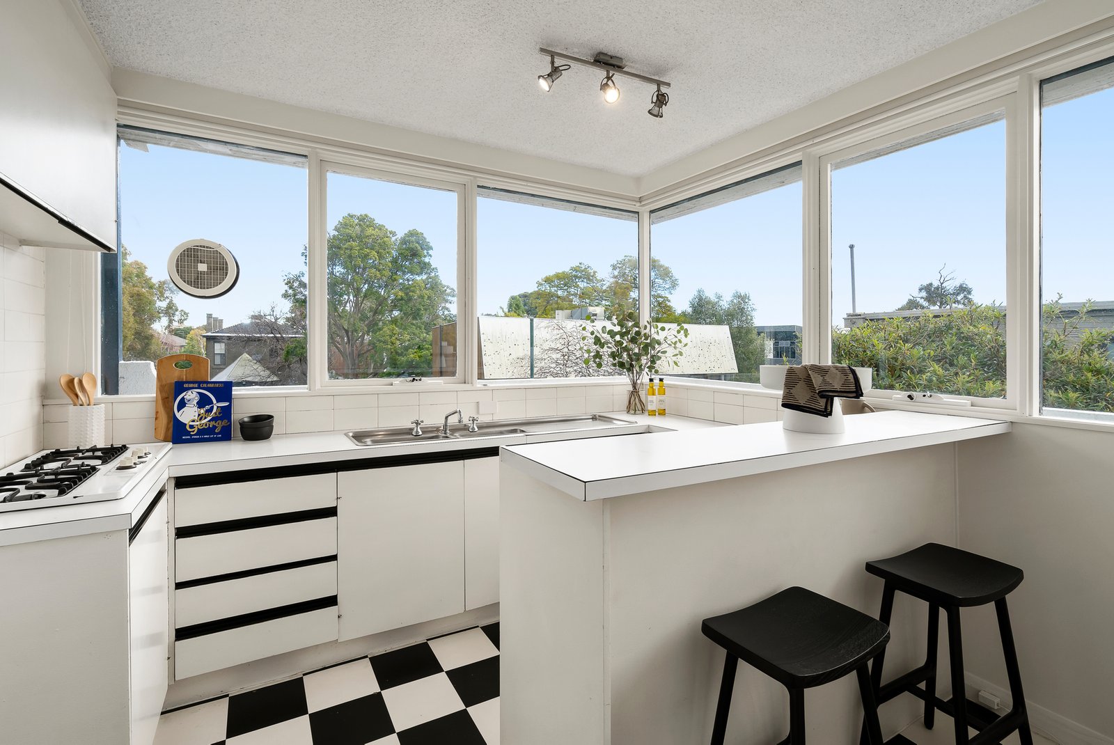 Directly opposite Orrong Park and framing vistas across its verdant expanses, this impressively large and light-filled, two bedroom apartment is a brilliant example of post-modern, mid-century chic, in a dream location just metres from High Street and surrounded by city-bound transport options. Securely set on the second floor, with huge light-letting windows and a generous balcony, the apartment feels like a treetop hideaway in one of the area’s more iconic buildings.