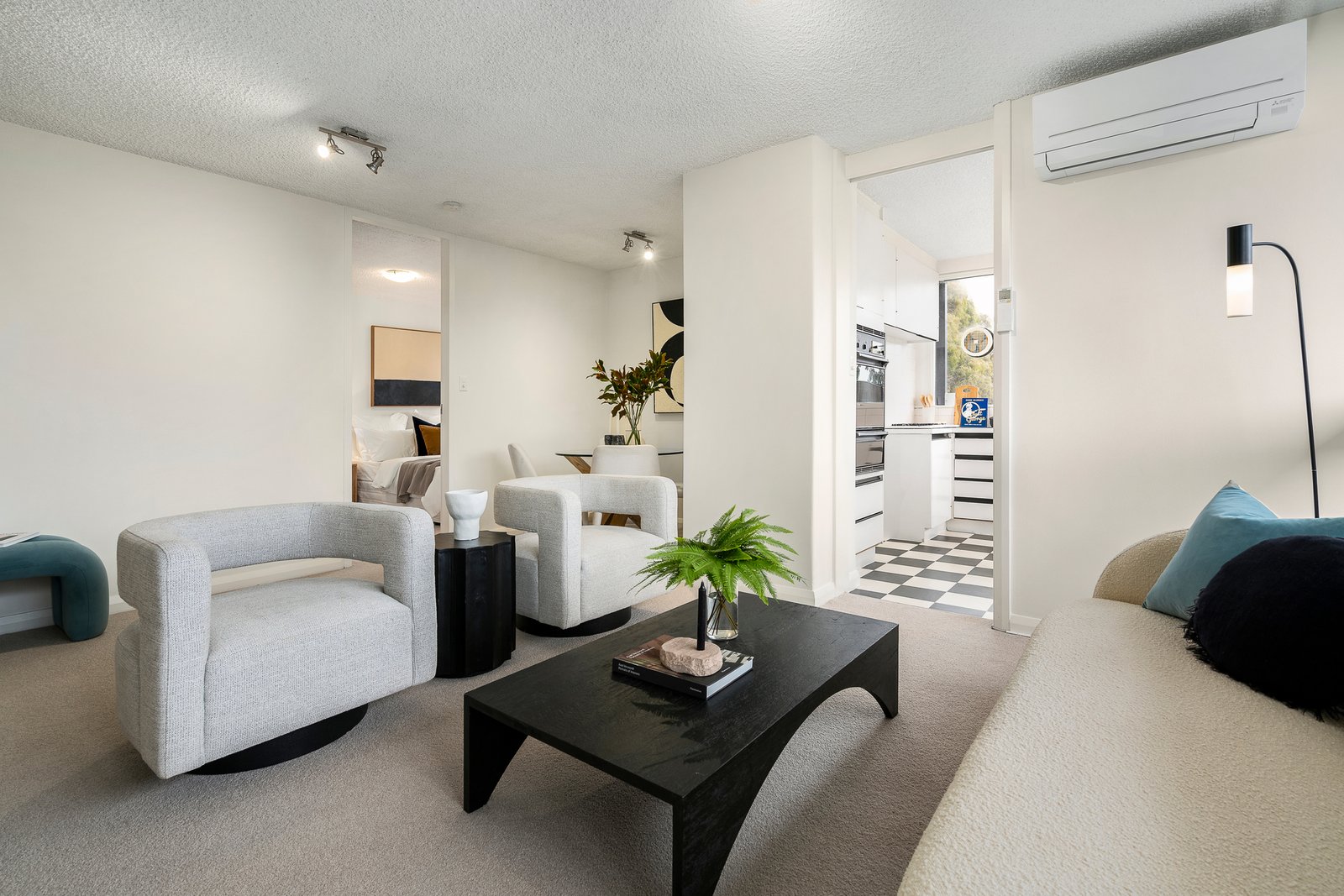 Presenting a compelling blend of current day livability and opportunity for future rejuvenation, the kitchen / meals is particularly bright with wrap-around windows, whilst a semi-attached lounge / dining is impressively scaled with seamless balcony connection and equally abundant natural light. The main bedroom benefits from an entire wall of built-in robe storage and an ensuite with laundry facilities, whilst the second bedroom – also with built-in robes – is conveniently adjacent to a powder room and second shower, plus there is secure video entry, split system heating and air conditioning, as well as the coveted prize of an oversized undercover parking space.