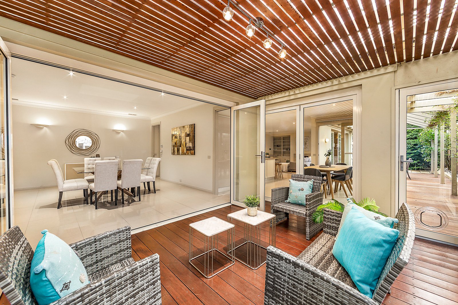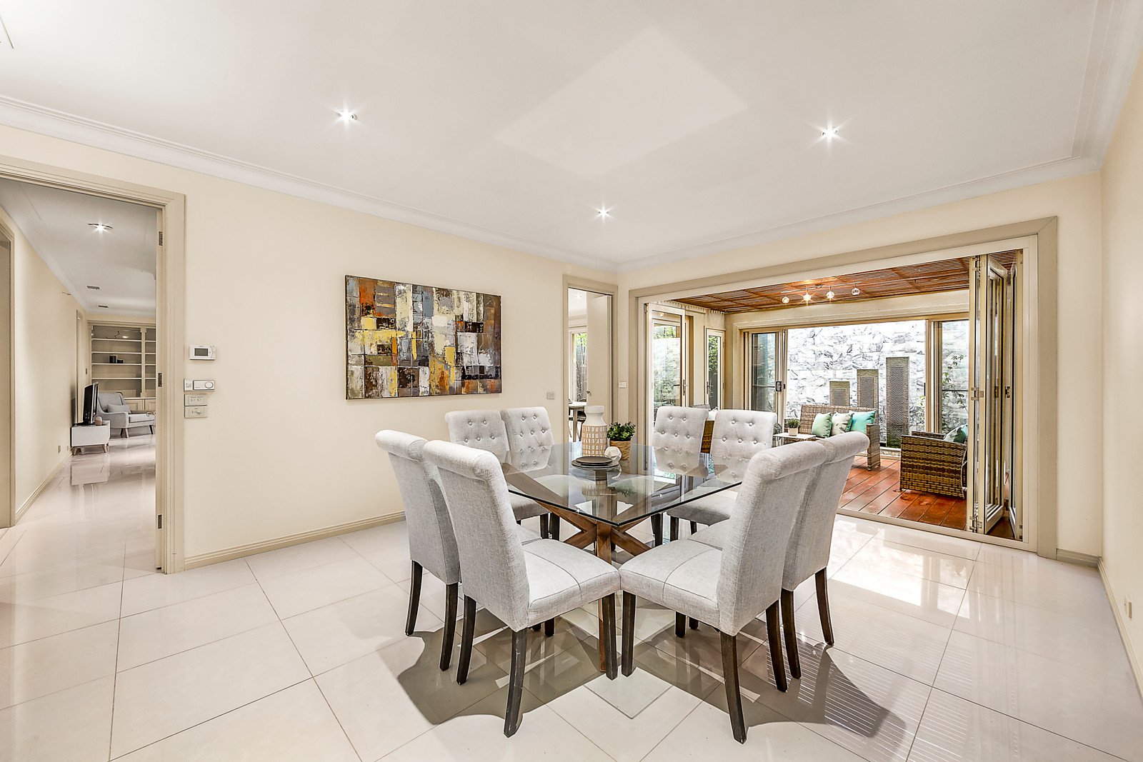 Recent refurbishments to this elegant and luxurious home have ensured its status in the surrounding streetscape and enhanced its generously proportioned accommodation which provides superb family living and entertaining spaces. Introduced by a neatly clipped classic garden framed by ornamental and Silver Birch trees, the interior features a wide marble tiled entrance hall flowing past two bedrooms, main with WIR and fully-tiled ensuite and a powder room. With a further two bedrooms with BIRs are zoned to the rear with a family bathroom second powder room, study and large laundry. Basking in northern light the living areas include a formal sitting room and dining room opening to a covered central deck and leading to an expansive family domain and a superbly appointed prestige Euro and granite kitchen opening to a private alfresco courtyard designed for entertaining.