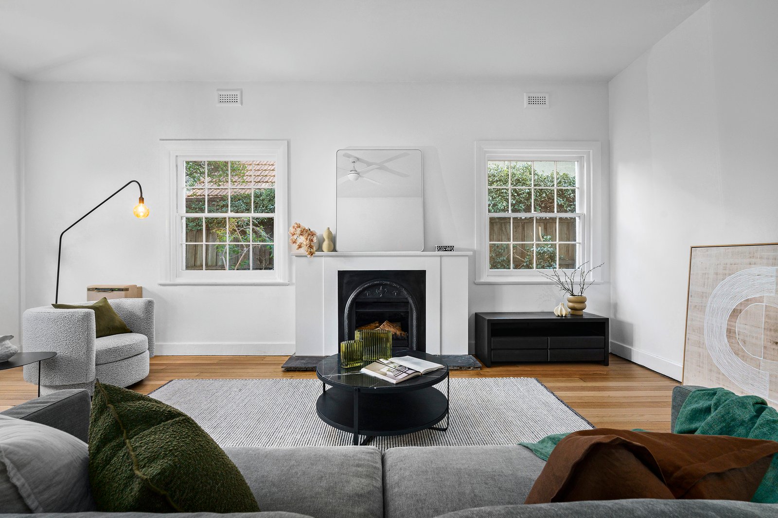 Well presented as is yet brimming with exciting potential for a contemporary renovation or extension (STCA), its sunlit spaces offer an ideal foundation for crafting your dream home. Beyond the lush established gardens, the welcoming entrance hall, defined by hardwood timber floors, flows through to a glorious front lounge room with an open fire and French doors to the garden patio and an adjacent dining room with a fireplace. The central, spacious kitchen continues to a rear family/meals domain, perfect for casual dining and entertaining, with direct access to the sunny rear terrace and gardens. The three robed bedrooms are found upstairs, including the north-facing main bedroom which features a beautiful bay window, OFP and sunroom/dressing- room with built-in robes.