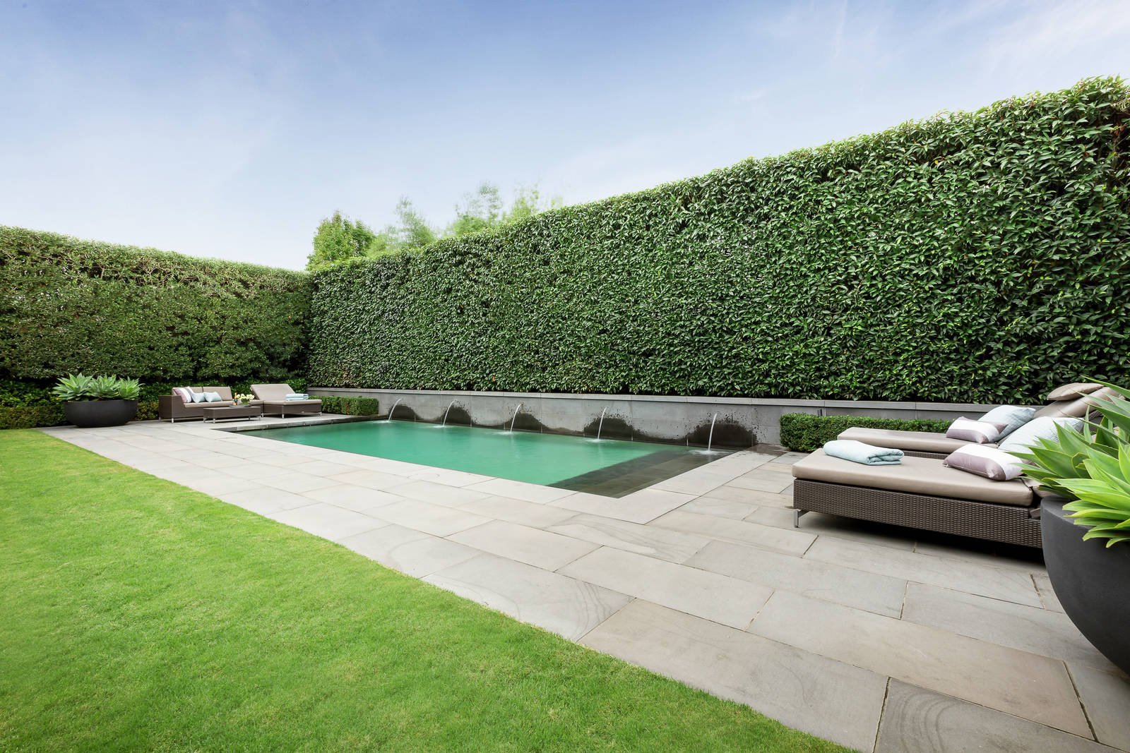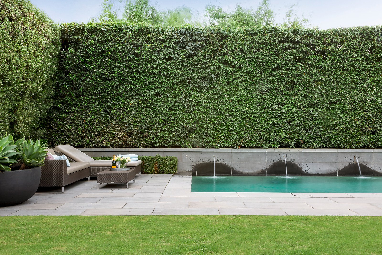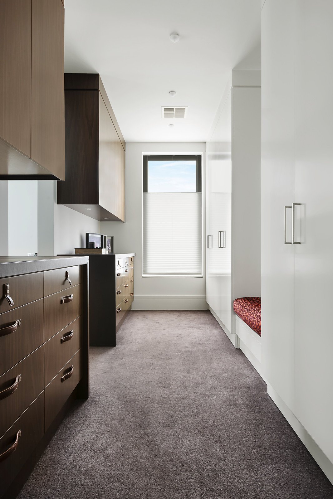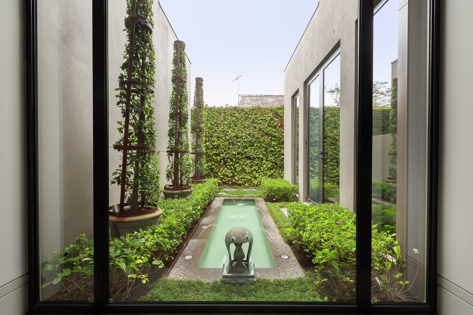 Timeless, elegant, solid and minimalist. These aesthetics, coupled with uncompromised quality, palatial proportions and scrupulous attention to detail led the brief given to Grodski Architects for BELLAZZO. The result is a stunning 4-bedroom contemporary residence where every square centimetre has been meticulously engineered and luxuriously appointed. Set behind high walls with mirror-image auto-gated driveways, the detail equally applied to indoor and outdoor spaces is clear. A bluestone paved walkway through manicured Tuscan gardens designed by Jack Merlo seamlessly transform at the pivoting oversized front door to the entrance hall. Italian slab porcelain flooring flows while towering double-glazed & laminated windows are oriented to views of outdoor spaces, artfully furnished with sculptures and water-features. Inspiration has been gathered from the owners' travels all over the world. Elements inspired by designer hotel suites and contemporary art galleries are evident. On the ground level are several formal and informal living and dining spaces, a custom-built home office, powder room, and the commercial-grade Stone Italiana kitchen with butler's pantry, retractable partition and Gaggenau/Miele appliances. Clever touches include Dutch tulip-wood feature walls with hidden panels opening to generous storage spaces. The grand, oversized staircase is lit with imported Boyd wall sconces and swathes of wall-space is designed for large format artworks. Upstairs are the bedroom suites, all fitted with plush felted carpets. The Master suite incorporates a sizeable ensuite and walk-through dressing room fitted with bespoke leather cabinetry. Sumptuous Italian silk curtains add a glamorous touch. Two further bedroom suites have studies with expansive built in furniture and ensuites with Bisazza glass mosaic feature walls, and another king-size room with BIRs is currently set up as a gym. The Tuscan theme continues in the back garden with high hedges of Portuguese laurel and olive cocooning the super-private space. The lap-length swimming pool (gas/solar heating) has bluestone surrounds and trickles melodically via a row of fountains. There is an alfresco dining space with built-in mains gas BBQ, cabana bathroom and a lush flat lawn, ideal for bocce. Close to Brighton Beach, Church Street, New Street and some of Melbourne's best schools, this impressive residence also includes keyless entry, security system, commercial zoned heating and cooling, double glazed and laminated windows, laundry, DLUG/off-street parking for six vehicles, fully automated irrigation and rainwater tanks. Land size: 910 sqm (approx.).
