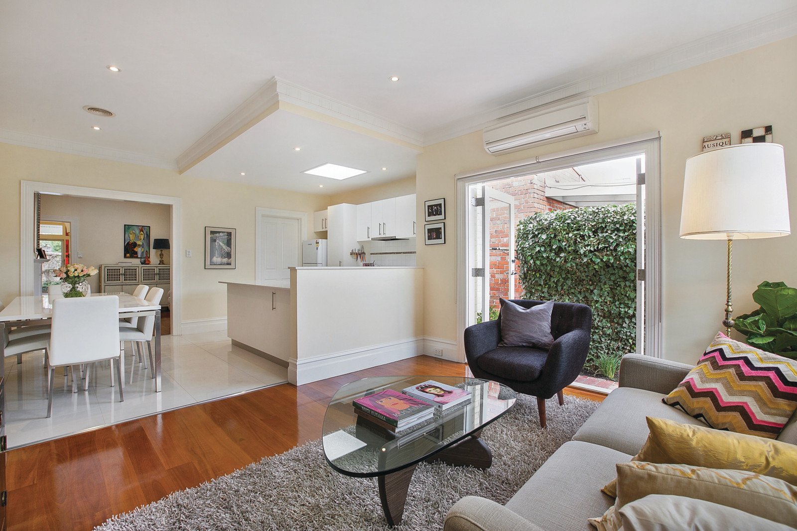 This elegantly appointed freestanding solid brick home offers charm and serenity, from its picture-perfect ivy-clad fence that hides the romantic facade from passers-by, through to the landscaped courtyard at the rear. Classical elements have been retained while sympathetic renovation has brought light and modern day style to this late 1800s gem. Period features abound with high ceilings above polished timber floors, deep cornices, layered architraves and a sophisticated hallway arch. Two well-proportioned bedrooms complete with BIRs and exquisite cast iron fireplaces precede the light-filled family, living and dining zones, served by a stylish kitchen. This open plan living area flows out through double doors to a courtyard ideal for entertaining and enjoying westerly sunsets as well as access to a rear laneway. The contemporary bathroom has separate bath, shower and powder room and a full laundry surprises with storage space and outside access. Loving touches include the wall-mounted stone water feature visible through a bedroom window with further features including security alarm system, front gate intercom, split system and ducted heating throughout. Just a short stroll from the cafes, shops and transport of cosmopolitan Carlisle Street, leading schools and within easy reach of the city, this is an opportunity to acquire a stylish home with historical character and tranquil ambience.