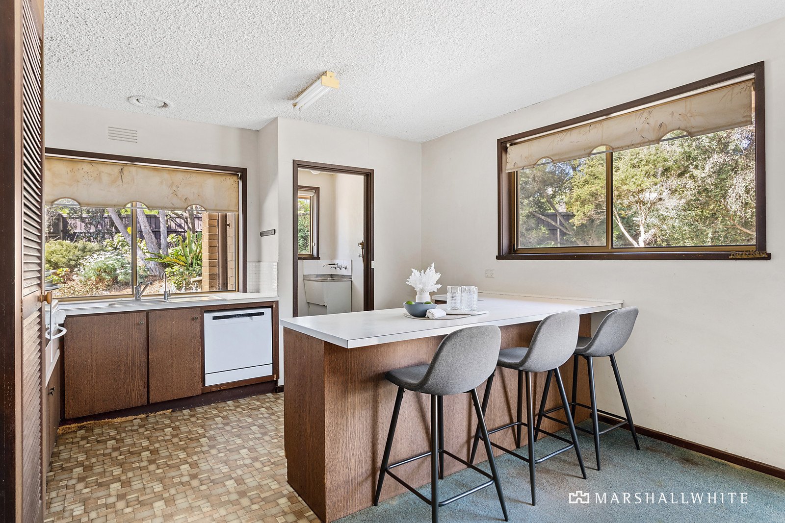 On the market for the first time in a quarter-of-a-century, the solidly built home has plenty of light-filled appeal with high cathedral ceilings, and large windows oriented towards lovely garden outlooks. Perfect for enjoying indoor/outdoor connectivity, the front living room has sliding glass doors that open to an undercover alfresco patio, while the adjoining kitchen/family meals area overlooks the side garden.