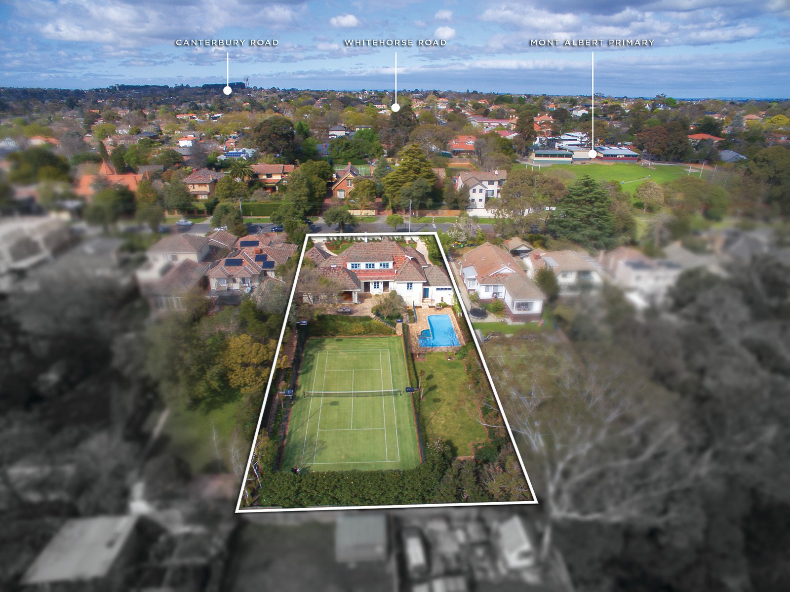 Commanding panoramic views to the Kinglake Ranges, this magnificent c1950 residence's superlative dimensions are set amidst spectacular 2,323sqm approx. north facing garden surrounds with north-south tennis court and pool. An exceptional domain, it delivers resort-style family living in a prime location near schools, Whitehorse Rd trams, Balwyn Village and Mont Albert station.