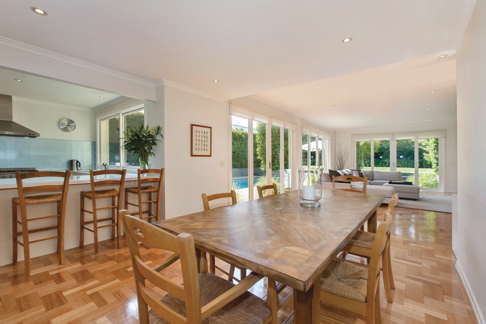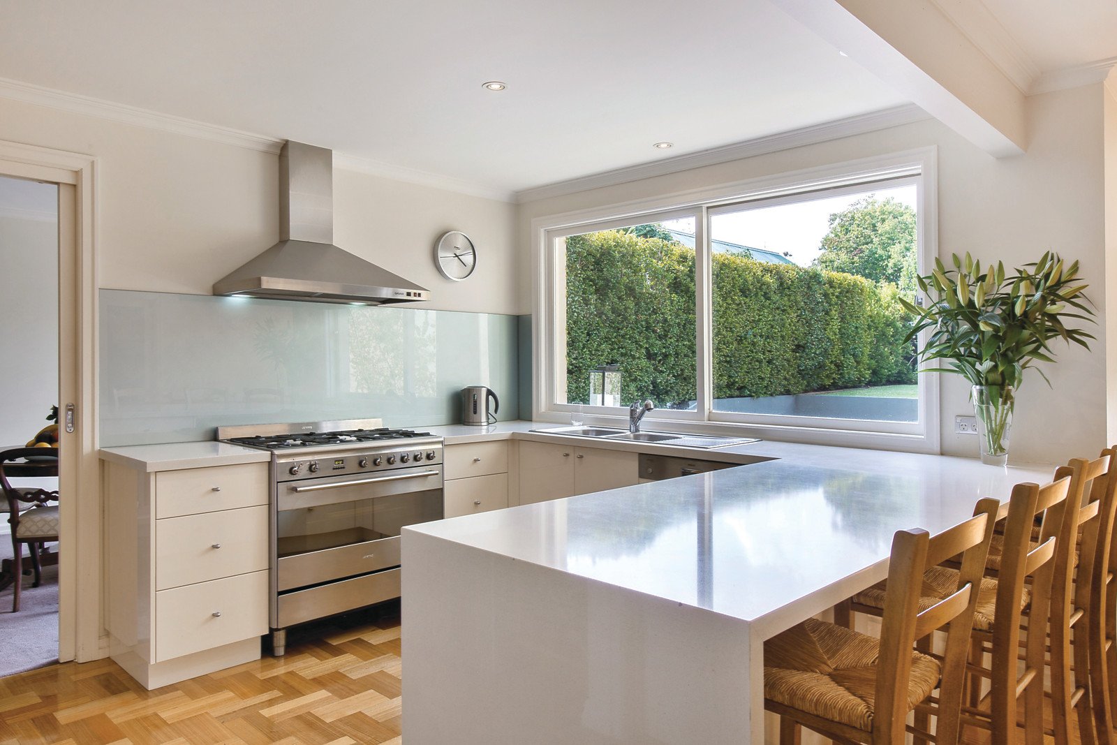 Bathed in natural light, the beautiful formal sitting and dining room enjoys glorious garden outlooks to the north and south. The impressively proportioned family living and dining room featuring a gas fireplace and sleek gourmet European kitchen with stone benches opens to the deep picturesque hedged north garden with solar heated pool. The captivating main bedroom with designer en-suite and walk in robe is matched by three spacious fitted bedrooms, a study and stylish bathroom.