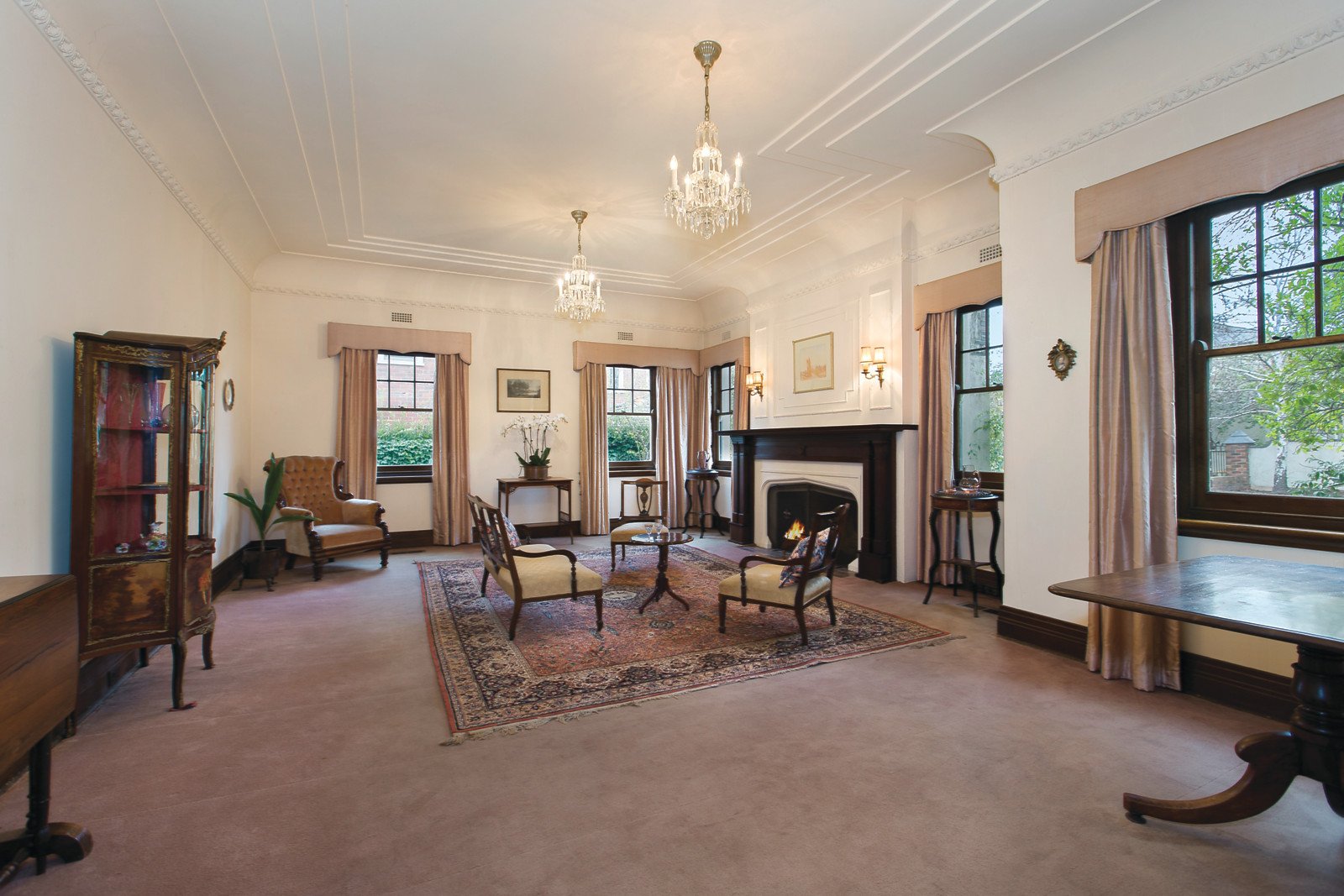 Offered for the first time in over 40 years, set back from a leafy tree-lined avenue and framed by English-style gardens and slate paving front and rear, period features abound such as two open fireplaces, sash windows, warm timber paneling and decorative ceilings. A marble butler's pantry, kitchen, laundry and bedroom/study complete the ground floor. On the first floor four generous bedrooms (expansive main with dressing room) share two bathrooms.