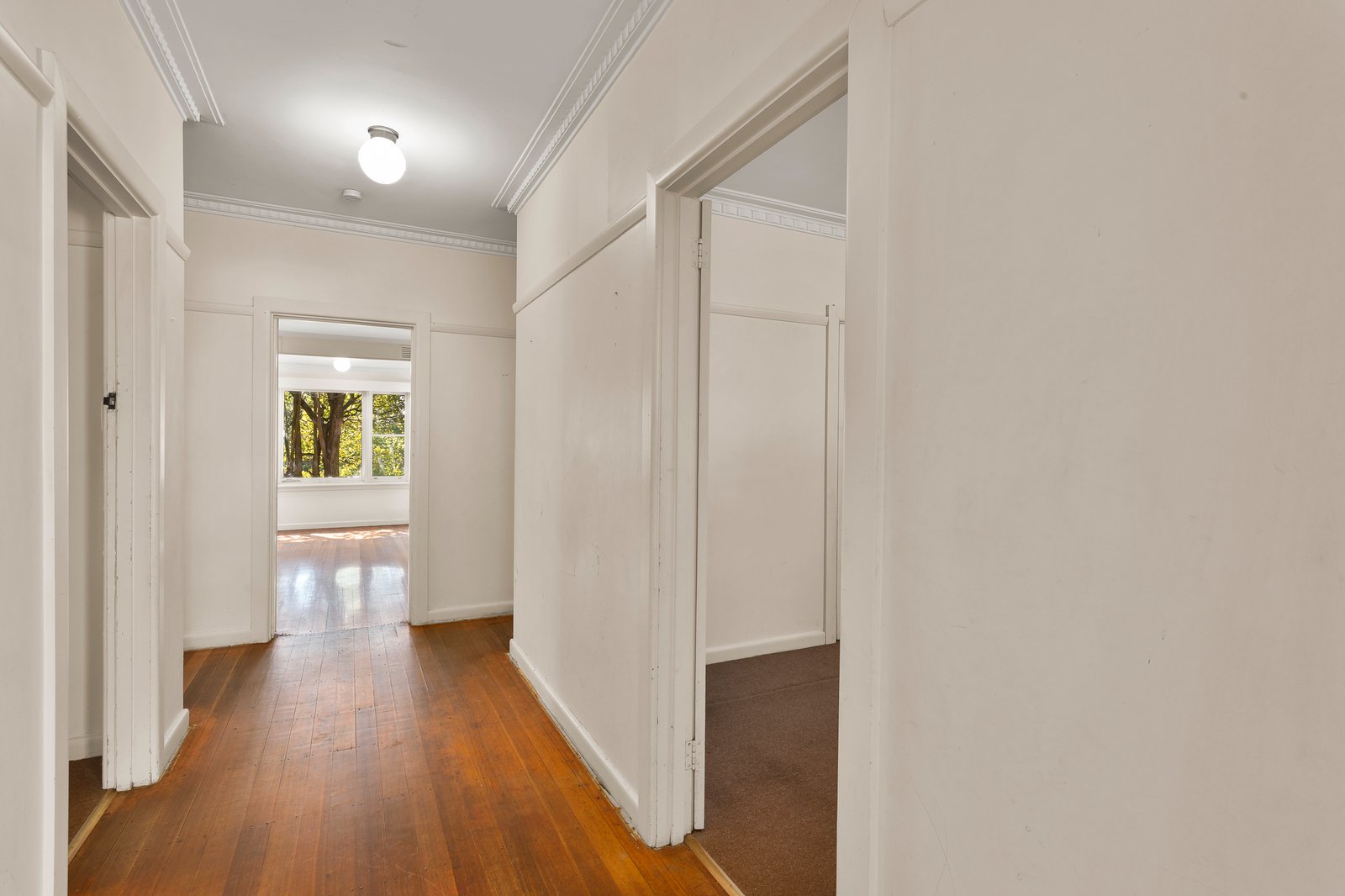Perfectly comfortable to enjoy now or lease out while considering the possibilities, the wide entrance hall featuring timber floors flows through to a generous living room, three double bedrooms and a bathroom. The large capable kitchen with ample space for dining opens to the very deep private northeast garden.