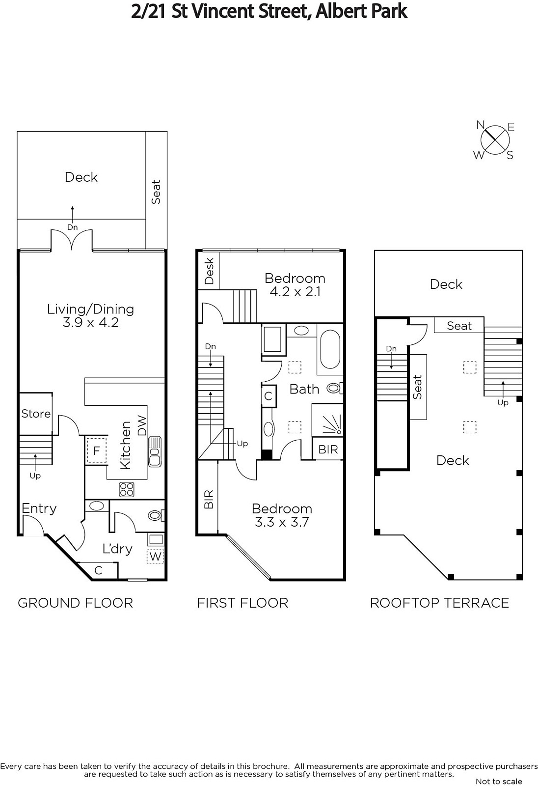 Residence 2. On the fringe of St Vincent Gardens near Albert Park Village, this superb contemporary homes light-filled dimensions deliver 3 levels of sensational indoor and outdoor living culminating in a fabulous rooftop terrace offering wonderful views. Timber floors, ultra high ceilings and a bank of north-facing glass accentuate the space. Natural light flows through the inviting open plan living and dining zone opening to a north-facing private courtyard. The bright modern kitchen is appointed with a stainless steel oven. Two bedrooms upstairs share a smart bathroom/en-suite. The large private decked split level roof top terrace offering spectacular views is an ideal venue for al fresco entertaining or relaxing. Immaculately presented, it includes heating, powder-room, laundry and basement carspace.
