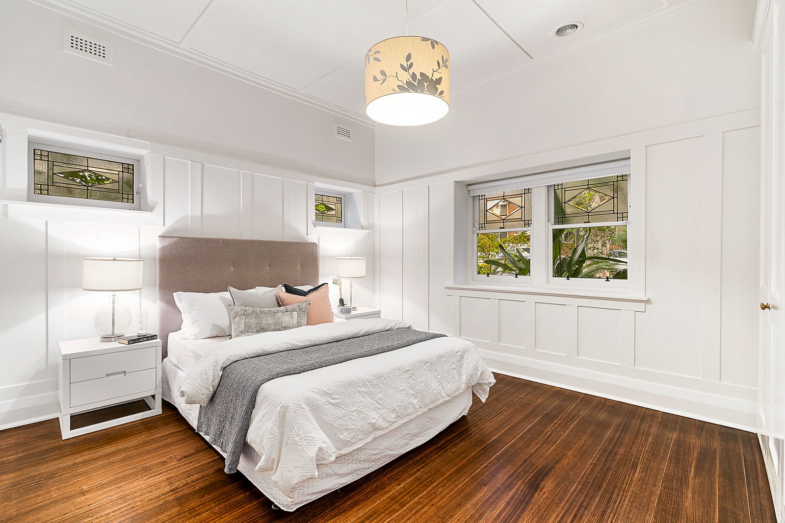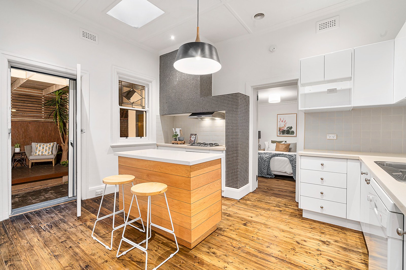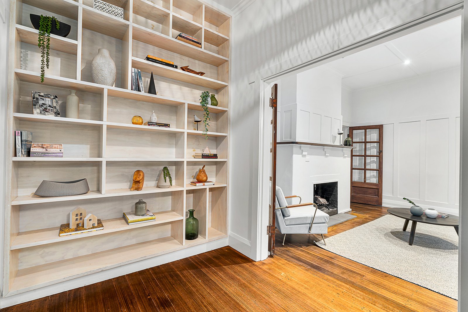 The picturesque façade reveals an equally captivating interior featuring dark stained timber floors, deep leadlight windows and high ceilings. A generous entrance hall with a wall of bespoke built in shelves introduces an inviting light-filled living and dining room with an open fire. The well appointed gourmet kitchen with stone benches and plenty of space for casual dining leads out to a private leafy paved garden, a fabulous outdoor sanctuary for entertaining and relaxing. The main bedroom with built in robes is complemented by two additional bedrooms, a study opening to the garden, and a chic bathroom with terrazzo floor.