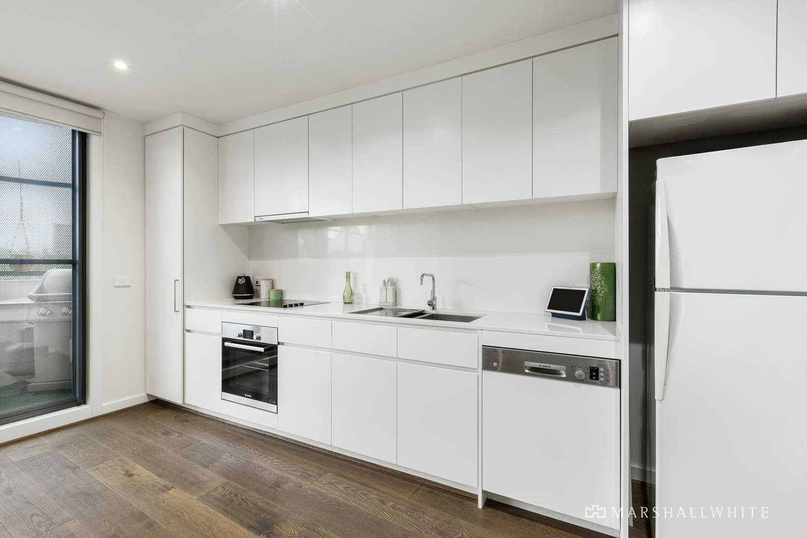 Overlooked by a modern, Bosch-equipped kitchen and with stylish Oak under foot, the open-plan dining / living is an attractive space that spills effortlessly outdoors where the views are quite spectacular and the morning sun is perfect for your daily coffee. Fully secure with video entry, basement parking and a storage unit, the apartment also features a fully-tiled main bedroom ensuite that is themed to the main bathroom, as well as built-in robes in each bedroom, a second balcony, enclave study, split system heating and air conditioning.
