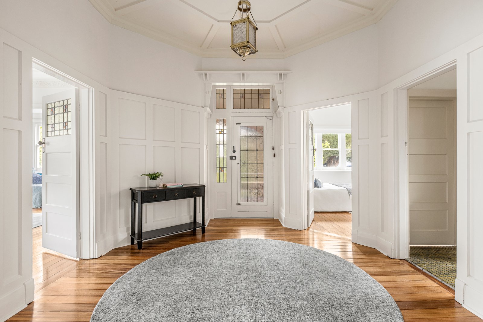 The spacious home features lovely leadlight windows and leadlight panelled doors, high ceilings, polished hardwood floors and a rarely seen octagonal entrance hall. Leading to a light-filled interior with the flexibility of two living areas and one with dining, three bedrooms, and a rear main with a WIR and ensuite plus a dual access period-style bathroom. A modern well-equipped kitchen/meals has a Westinghouse stove, AEG stainless steel dishwasher and adjacent laundry opening to a deep rear garden with an external study or home office. Other features include ducted heating, potting shed, water tanks and an original double garage with home mechanic’s pit, workshop and storeroom.