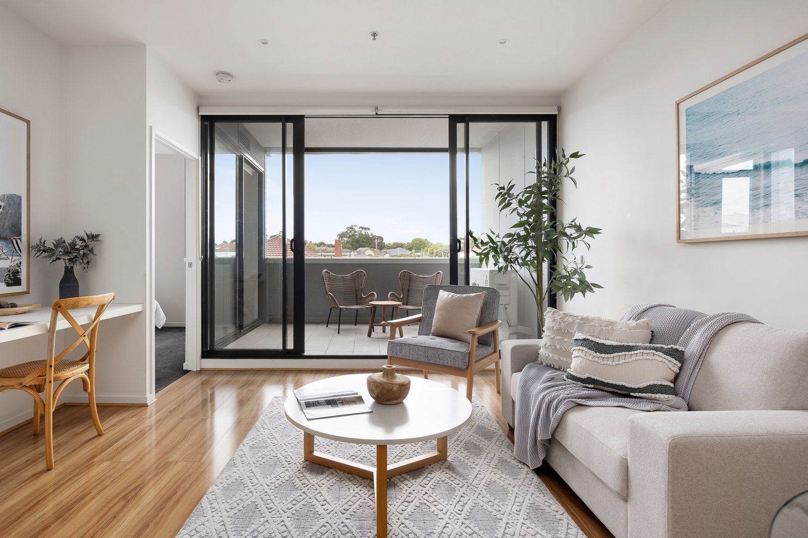 As it highlights a gourmet kitchen with Miele appliances and waterfall-edged benches of stone, the open-plan dining / living is efficiently designed with a study nook and seamless flow through double glazed sliding doors to a breakfast balcony that basks in morning sunshine. Meanwhile, each of the bedrooms has been finished with built-in robe storage in this fully secure apartment with video entry, non-stacker basement parking and storage as well as a communal gymnasium, laundry facilities in the bathroom and reverse cycle heating / air conditioning.