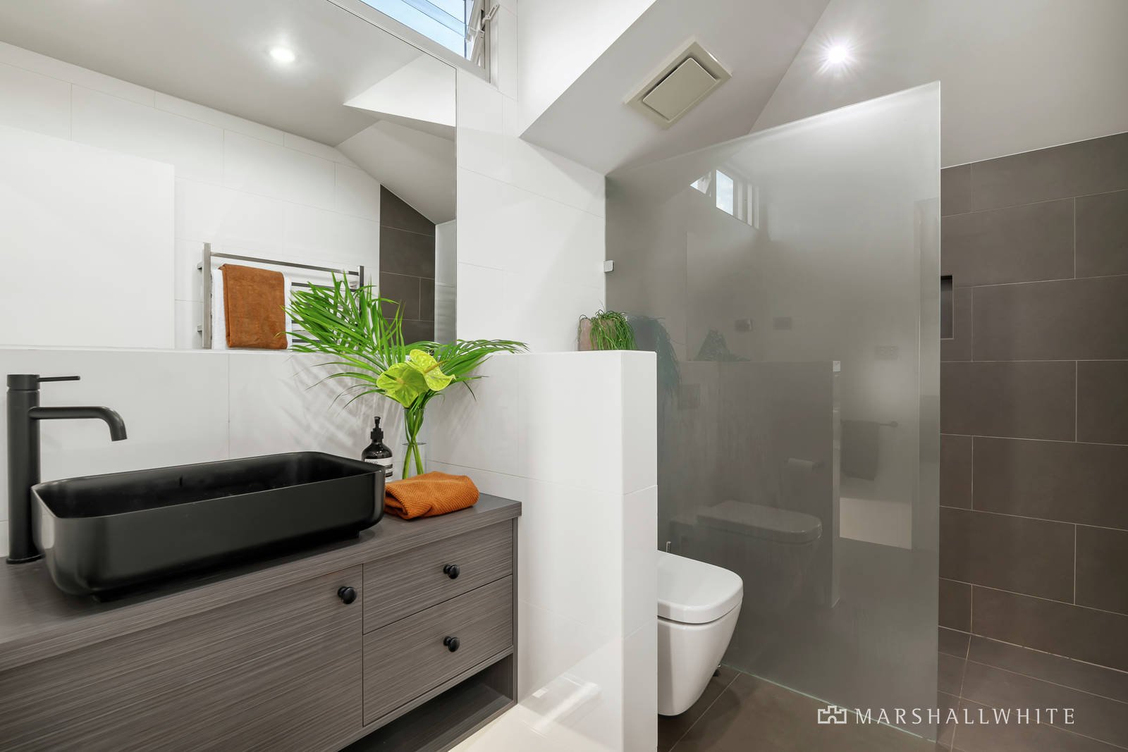 Behind the glorious block-fronted exterior, the wide arched hall with its high ceilings and oak floors introduces an expansive living room with a gas log fire and an evocative dining area opening completely through bi-fold doors to a stunning west-facing outdoor oasis with BBQ deck and secure off-street parking via the side lane. The sensational gourmet kitchen appointed with Neff appliances, integrated fridge/freezer, stone benches and a fabulous breakfast bar/servery connects to the courtyard for effortless entertaining. There are three downstairs double bedrooms with robes and a stylish bathroom while the lavish main bedroom suite upstairs comprises designer bathroom, walk in robe, expansive retreat with gas pebble fire and a large west-facing sundeck offering city views.
