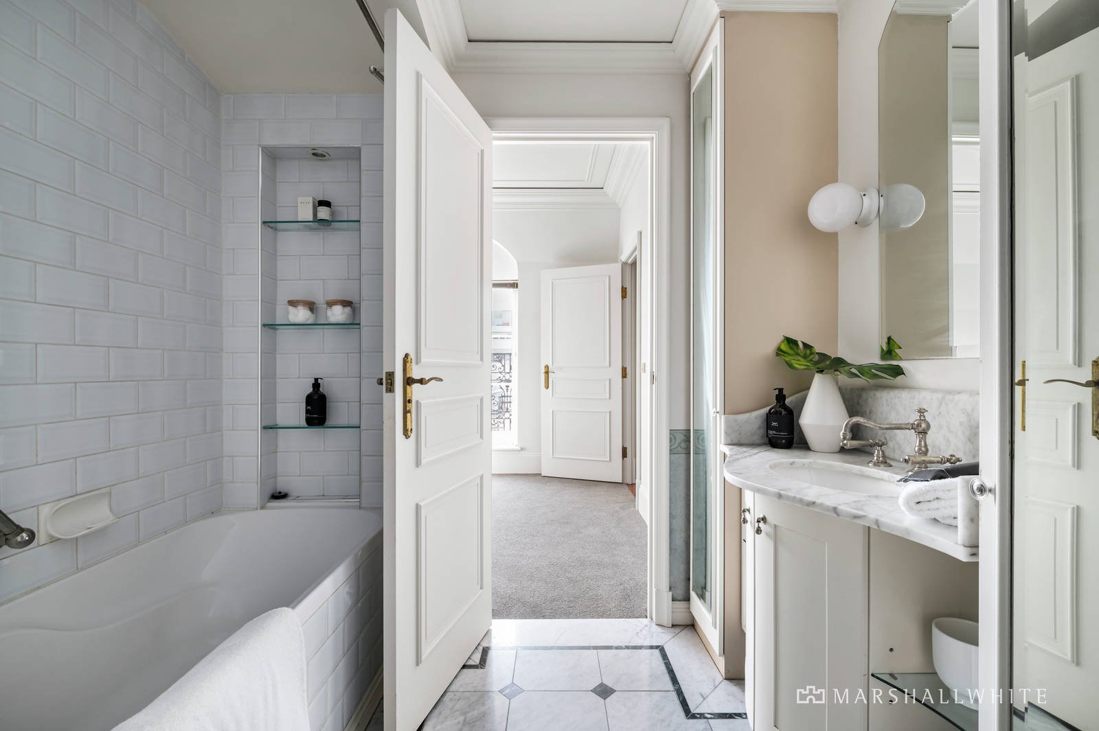 Encapsulating all the exquisite refinement of a Parisian pied-a-terre, this utterly charming and impressively proportioned single bedroom apartment is exclusively nestled in a peaceful cobble-stoned laneway, just metres from Toorak Village. Inspired by French architecture and set on the second floor / top floor of the iconic 'The Clairmont' building, the apartment fills with northerly light while revealing impeccable lock-and-leave credentials in one of Melbourne's most renowned lifestyle locations. Accessed securely via video entry and within a parquetry-floored entrance, the apartment creates an immediate visual impact under soaring and detailed ceilings, as a generous lounge / dining looks out through French Doors to communal gardens where the sounds of a water feature create a soothing sense of calm. Appointed with Bosch and SMEG appliances, marble benches and more parquetry flooring, the kitchen is a wonderful delight, whilst the bedroom enjoys built-in robe storage, as well as ensuite access to the bathroom and more views framed by French windows. The apartment also offers the considerable prize of secure basement parking as well as a European laundry. Simply stroll around the corner to immerse yourself in some of Melbourne's most renowned cafe culture, fine dining, boutique shopping and thriving bars, plus you can enjoy effortless city commuting via the Number 8 tram.