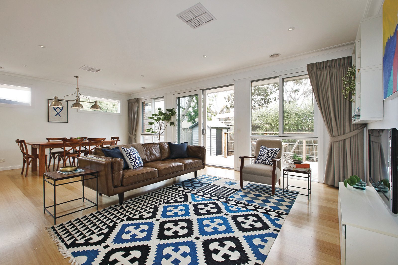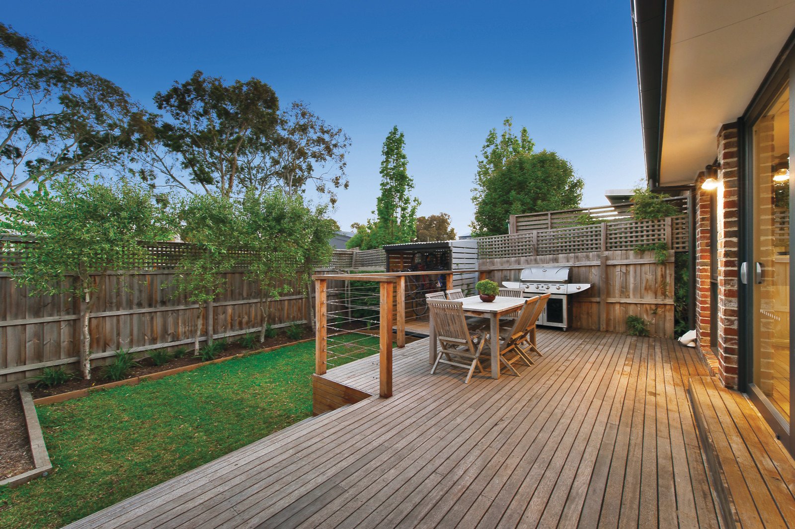 Boasting a preferred northern orientation the light and bright interior features polished timber entrance hall, three bedrooms with BIRs, main opening to a sunny front garden, pristine bathroom and laundry with WC; plus an expansive living and dining area incorporating a sleek kitchen with CaesarStone bench-tops, timber island bench and stainless steel appliances plus concealed study alcove - flowing to a large deck overlooking a leafy rear garden - offering marvellous private facilities for indoor/outdoor entertaining and relaxation. Other features include ducted heating, evaporative cooling, R/C air conditioner (main bedroom), roof storage, easy care gardens, 5000L water tank, shed and off-street parking.