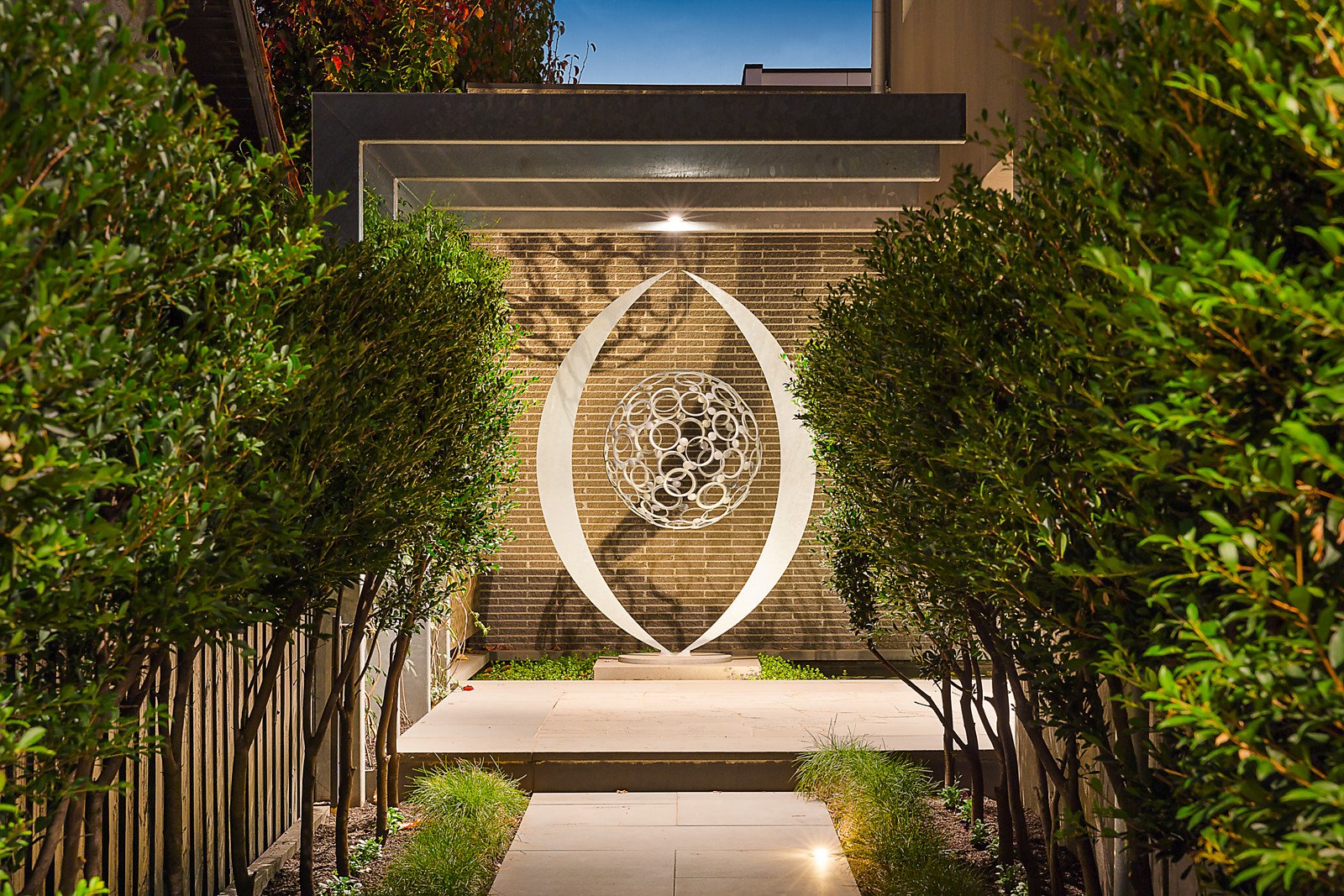 Beautifully landscaped gardens that provide tranquil vistas from every vantage point, include a serene pond beneath a suspended metal sculpture at the entrance. An impressive foyer featuring high ceilings and polished concrete floors introduces a refined home office opening to a picturesque private north facing forecourt and a fabulous fully furnished home theatre. Beneath soaring ceilings, the glorious separate dining and living areas open to the central northwest courtyard with covered al fresco BBQ terrace and sensational self cleaning solar heated pool with lap section and spa. The sublime gourmet kitchen boasts stone benches, Miele appliances including integrated fridge/freezer and a butler's pantry. The downstairs main bedroom with walk in robe and chic en-suite opens to the forecourt while a upstairs living area comprises of three generous bedrooms all with walk in robes and stylish en-suites, a covered north balcony and retreat.