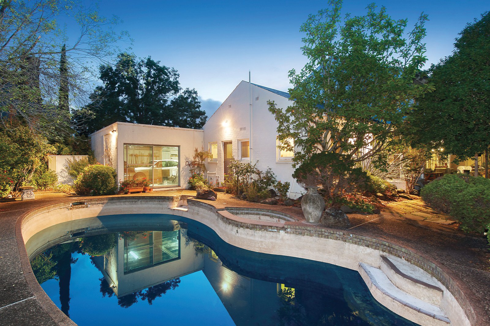 Elegant proportions distinguish the three interconnecting north-facing living, dining and sitting rooms all opening out to private north-facing gardens with pool and spa. The well equipped kitchen includes a casual dining area. The generous main bedroom with retreat, en-suite and built in robe is accompanied by a second bedroom with en-suite, third spacious bedroom (BIR) and 3rd bathroom.